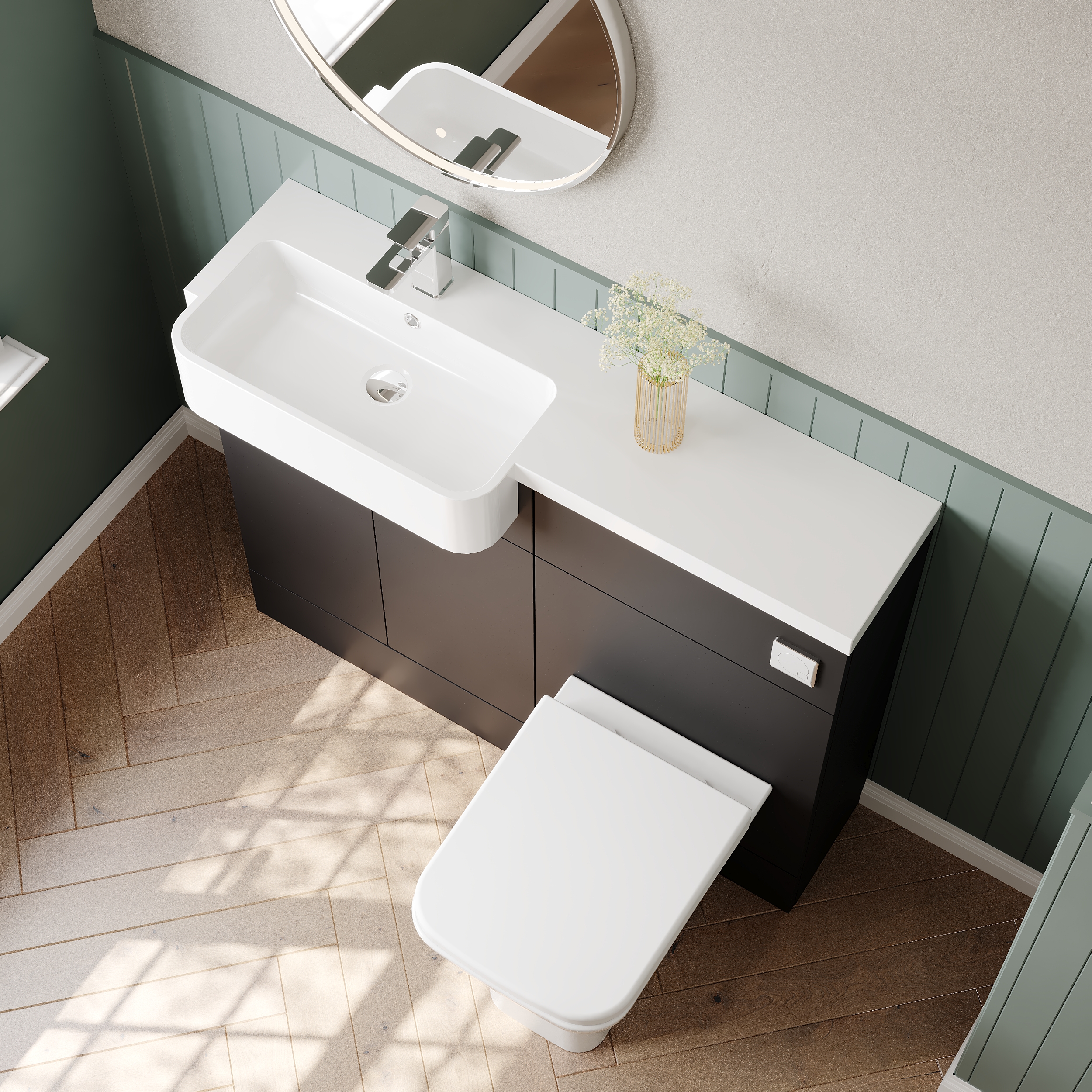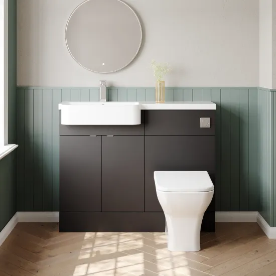 Hudson Reed Fusion 1100mm Floor Standing 2 Door Vanity Unit & Toilet Combination with Left Hand Semi Recessed Basin