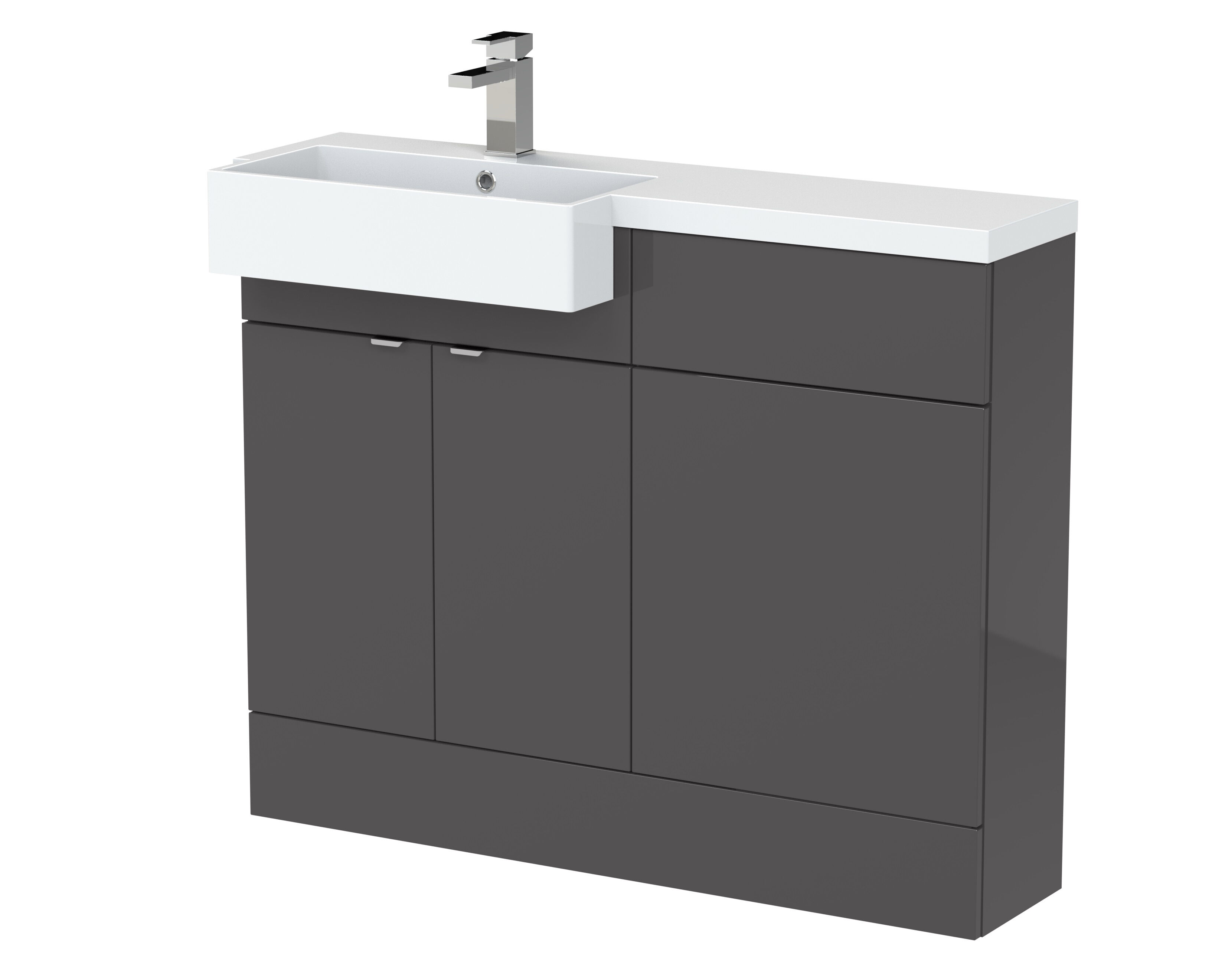 Hudson Reed Fusion Floor Standing 2 Door Vanity Unit & WC with Left Hand Semi Recessed Basin Combination 1100mm - Gloss Grey