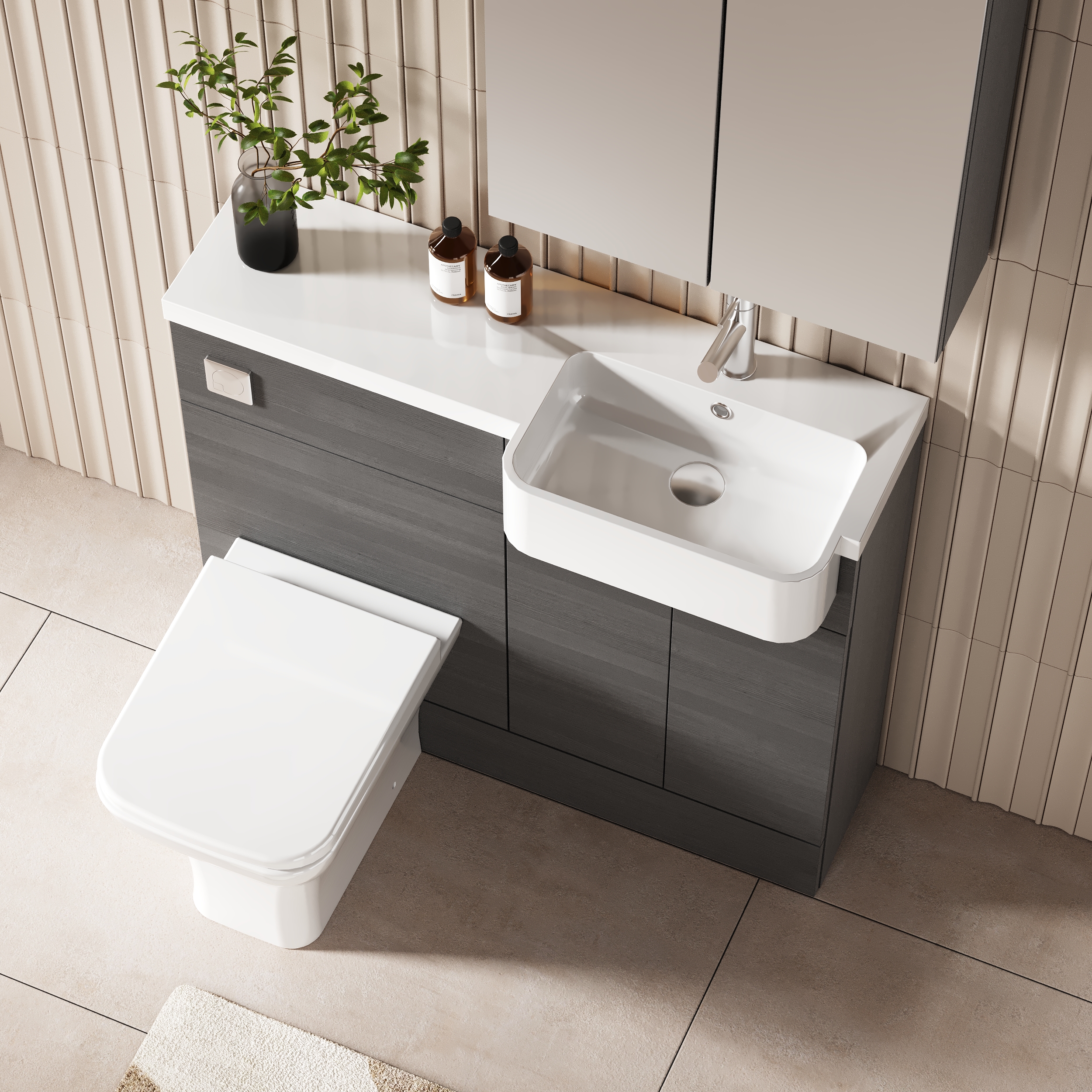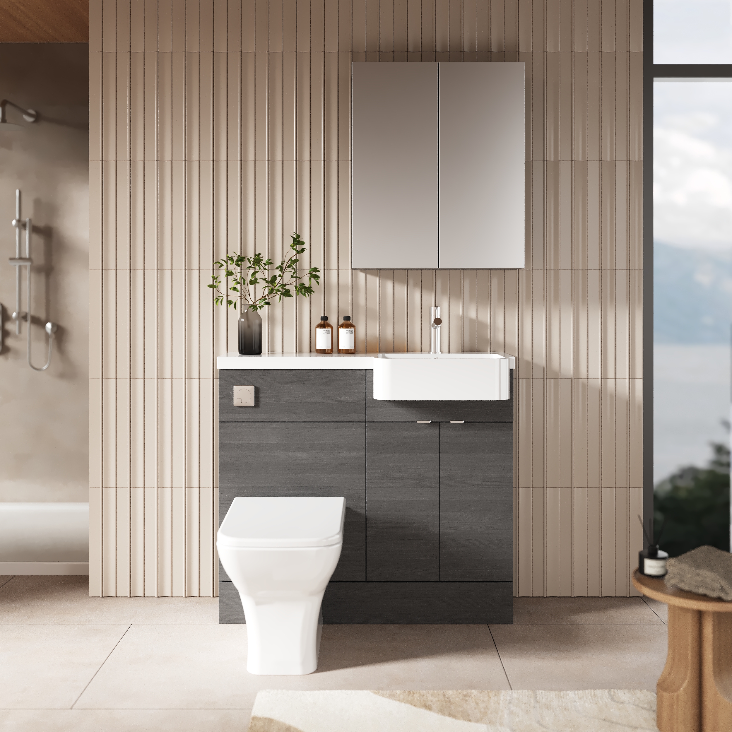 Hudson Reed Fusion Floor Standing 2 Door Vanity Unit & WC with Right Hand Semi Recessed Basin Combination 1000mm - Anthracite Woodgrain