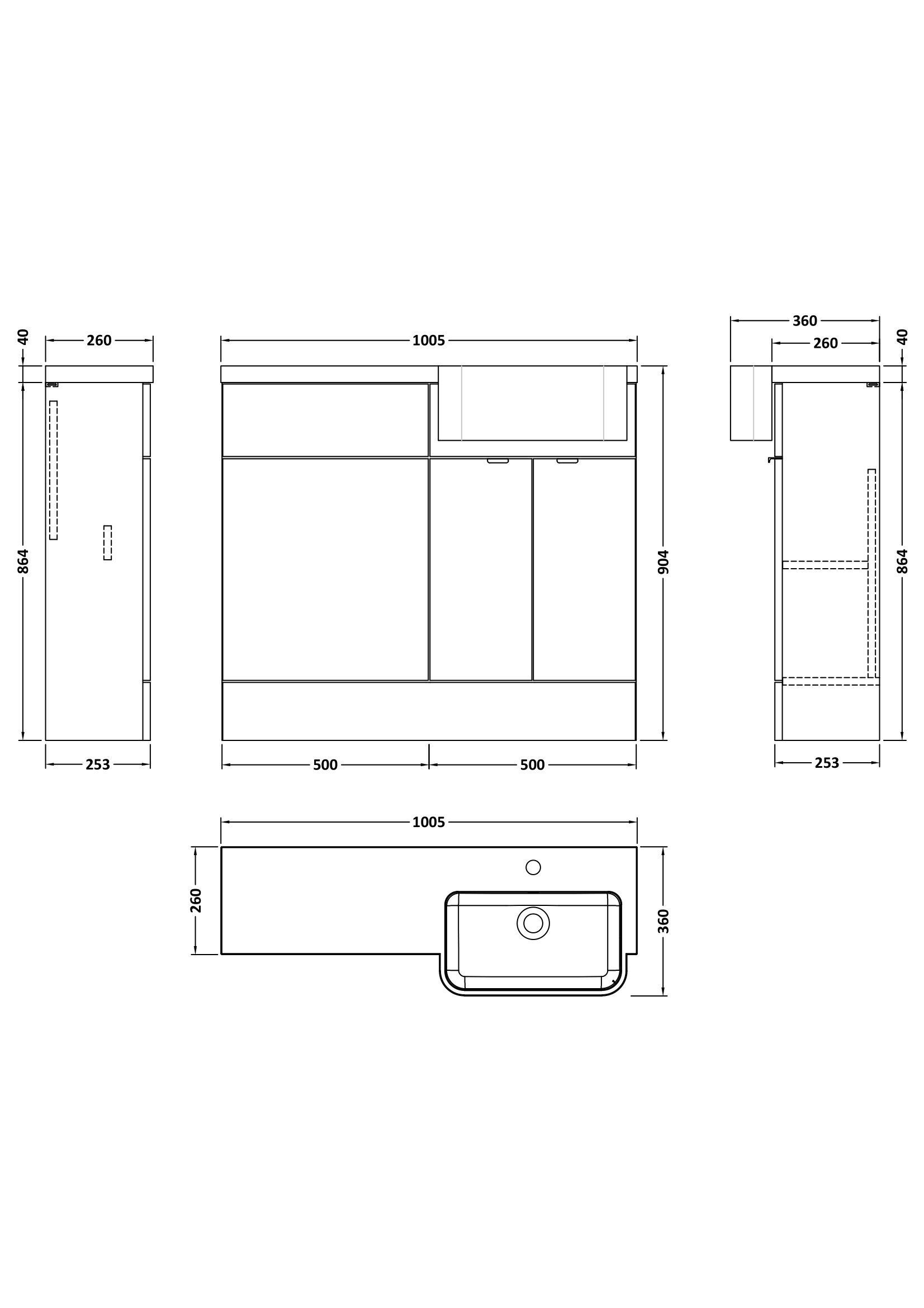Hudson Reed Fusion 1000mm Floor Standing 2 Door Vanity & Toilet Combination with Right Hand Semi Recessed Basin