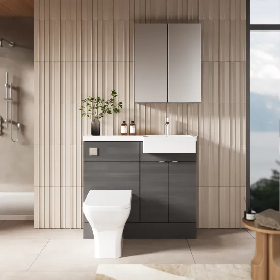 Hudson Reed Fusion 1000mm Anthracite Woodgrain Floor Standing Vanity Toilet Combo with Soft Close Doors