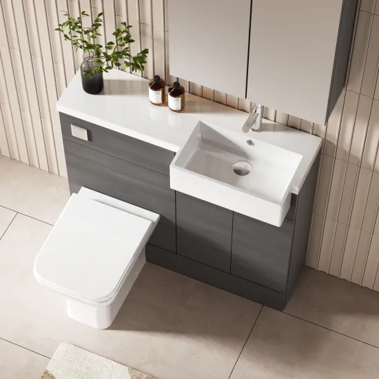 Hudson Reed Fusion Floor Standing 2 Door Vanity Unit & WC with Right Hand Semi Recessed Basin Combination 1000mm - Anthracite Woodgrain