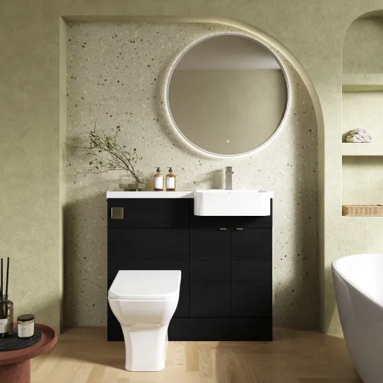 Hudson Reed Fusion Floor Standing 2 Door Vanity Unit & WC with Right Hand Semi Recessed Basin Combination 1000mm - Hacienda Black