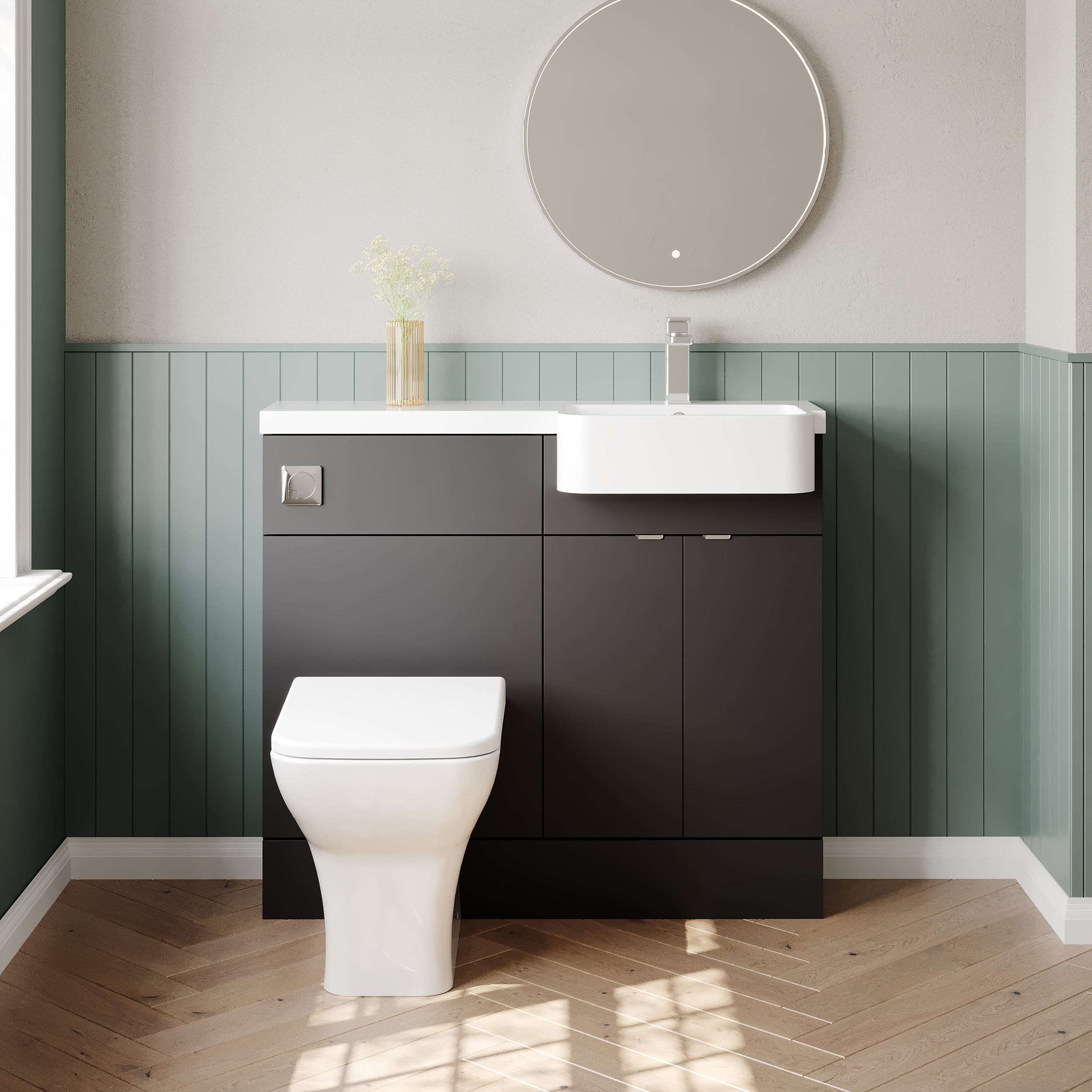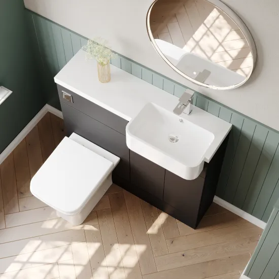 Hudson Reed Fusion 1000mm Floor Standing Vanity Unit & Toilet Combination with Soft Close Doors and Semi Recessed Basin