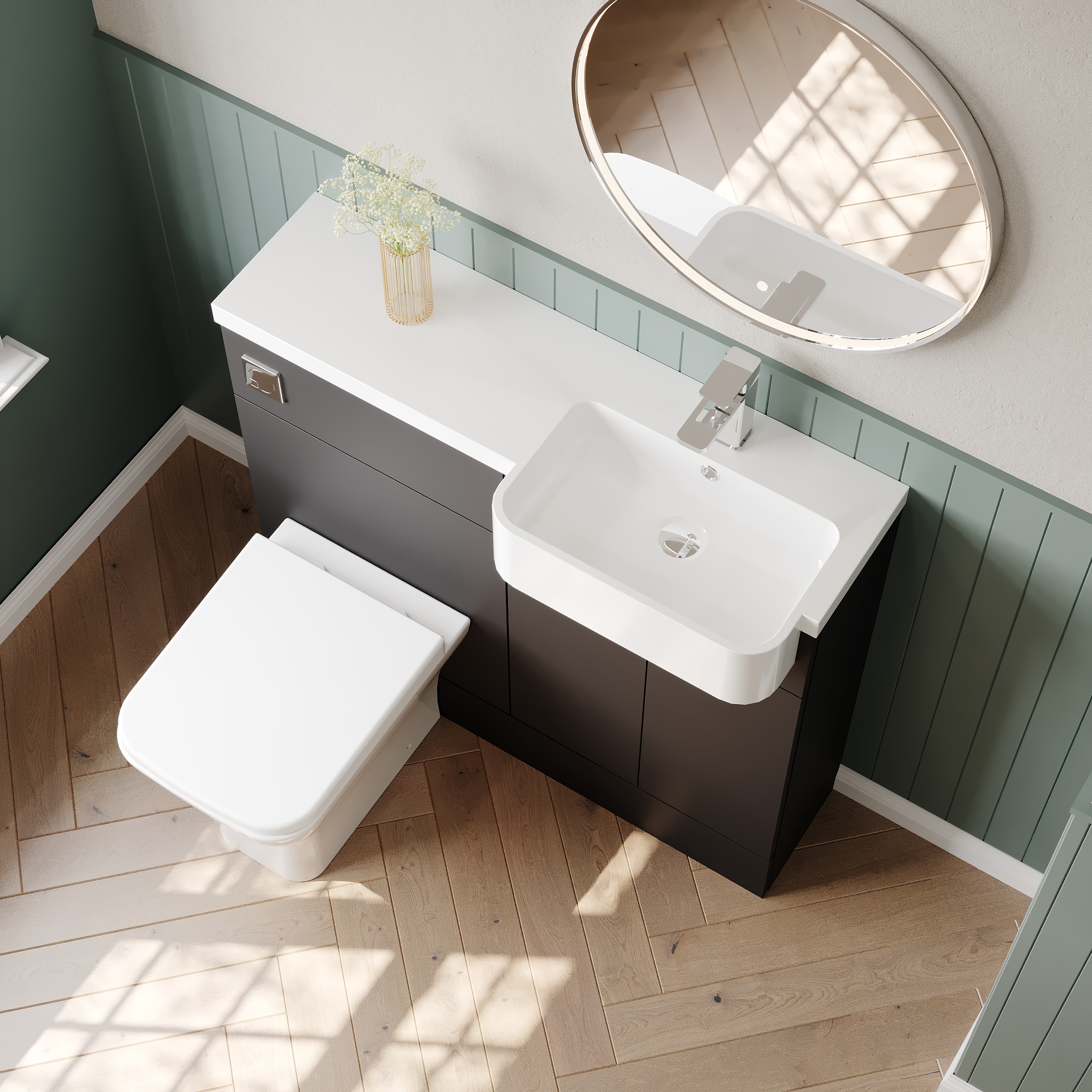 Our full-depth units give ample storage, perfect for a busy family bathroom