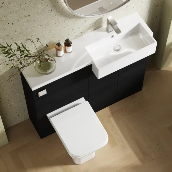 Hudson Reed Fusion Floor Standing 2 Door Vanity Unit & WC with Right Hand Semi Recessed Basin Combination 1100mm - Hacienda Black
