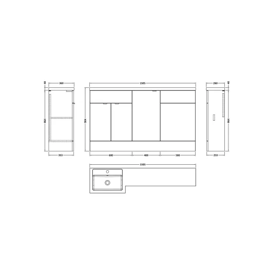 Hudson Reed Fusion 1500mm Left Hand Floor Standing Vanity Basin & Toilet Combination Unit