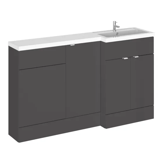 Hudson Reed Fusion 1500mm Gloss Grey Right Hand Floor Standing 3 Door Vanity Basin & Toilet Combination Ready Built