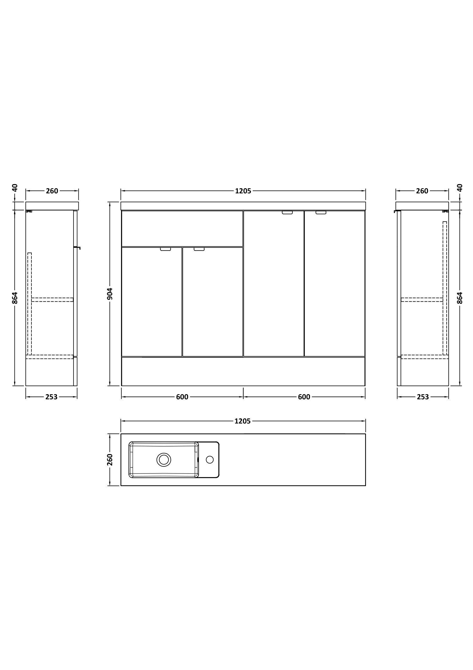 Hudson Reed Fusion Floor Standing 4 Door Vanity Basin Combination Compact 1200mm - Anthracite Woodgrain