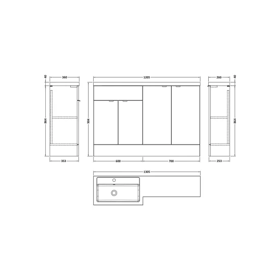Hudson Reed Fusion Floor Standing 4 Door Vanity Basin Left Hand Combination 1200mm - Anthracite Woodgrain