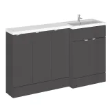 Hudson Reed Fusion 1500mm Gloss Grey Floor Standing 5 Door Right Hand Vanity Basin Combination With Handles