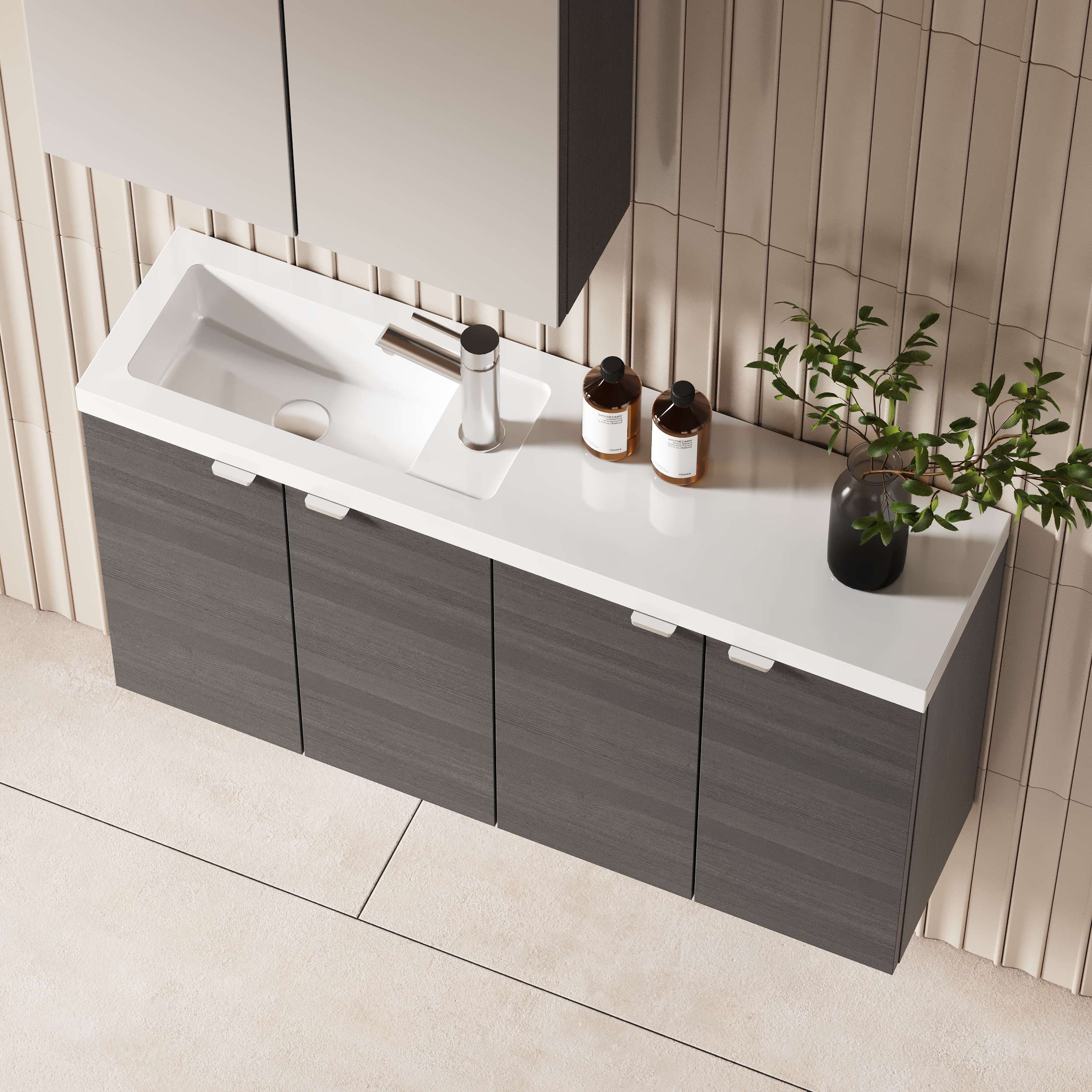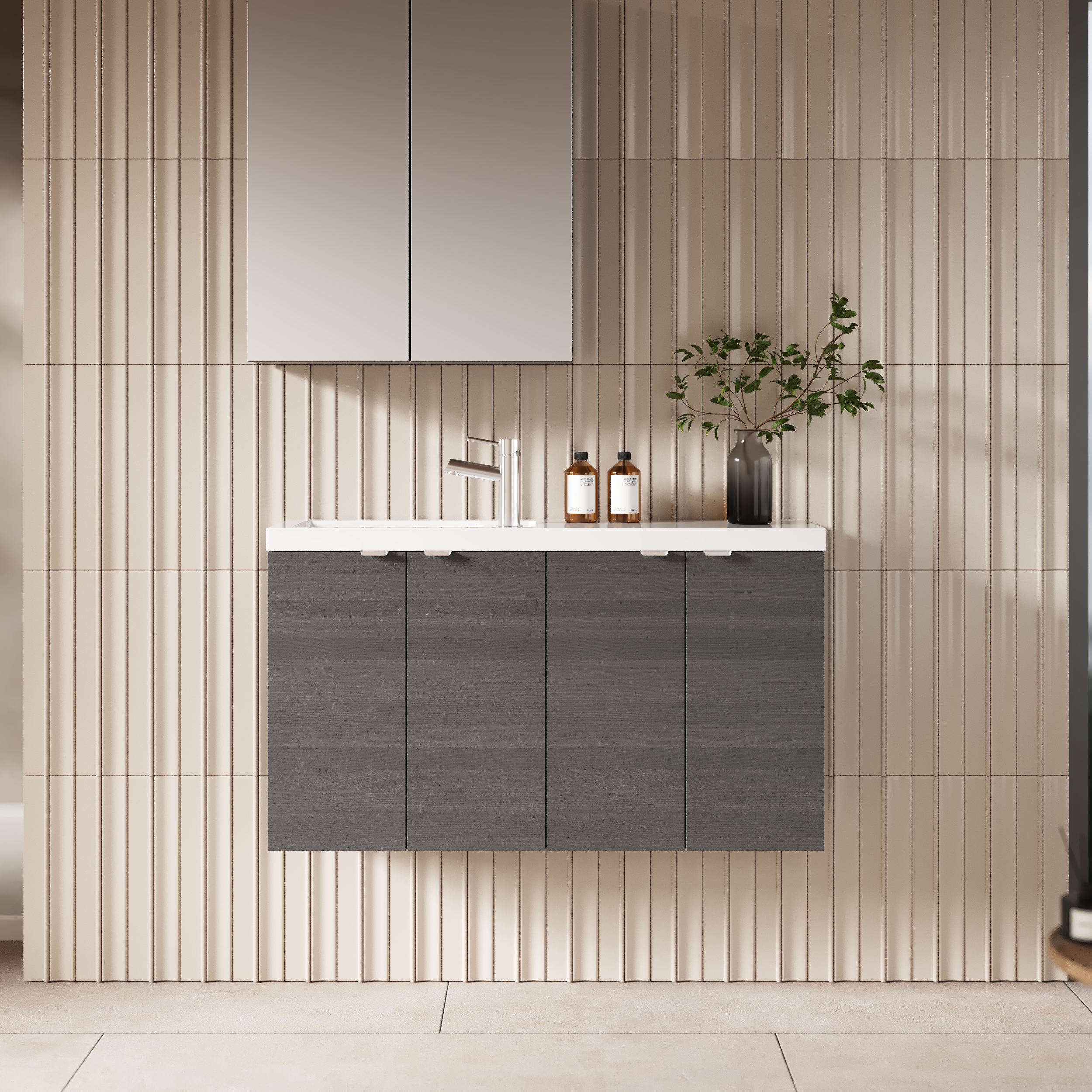 Hudson Reed Fusion Wall Hung 4 Door Vanity Unit & Polymarble Basin Compact 1000mm - Anthracite Woodgrain