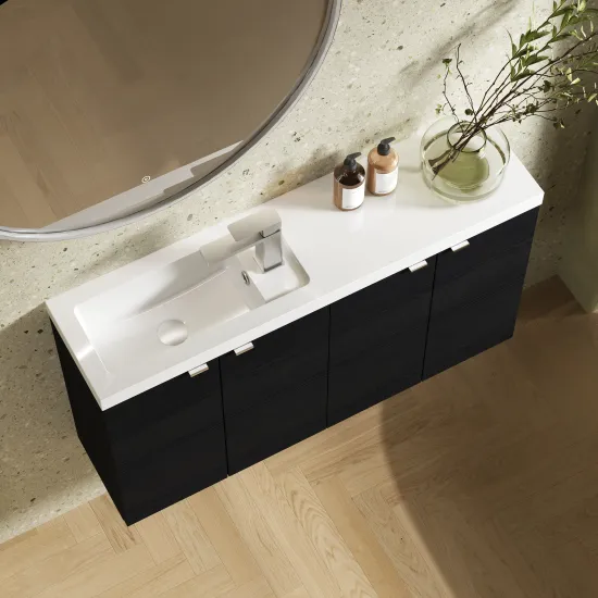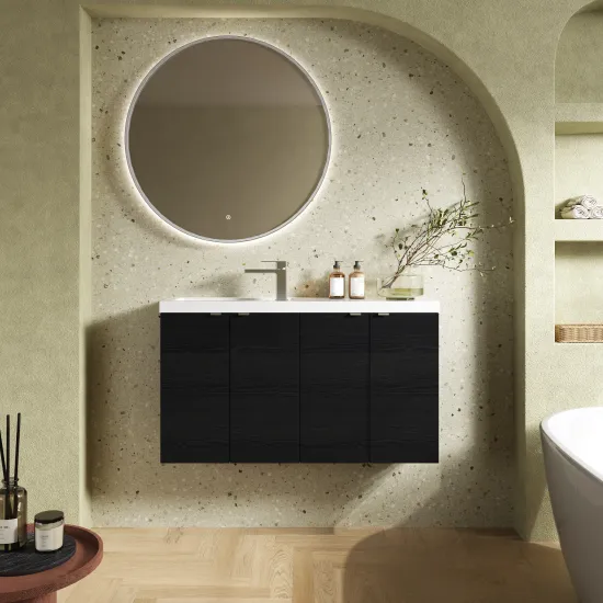 Hudson Reed Fusion Wall Hung 4 Door Vanity Unit & Polymarble Basin Compact 1000mm - Hacienda Black
