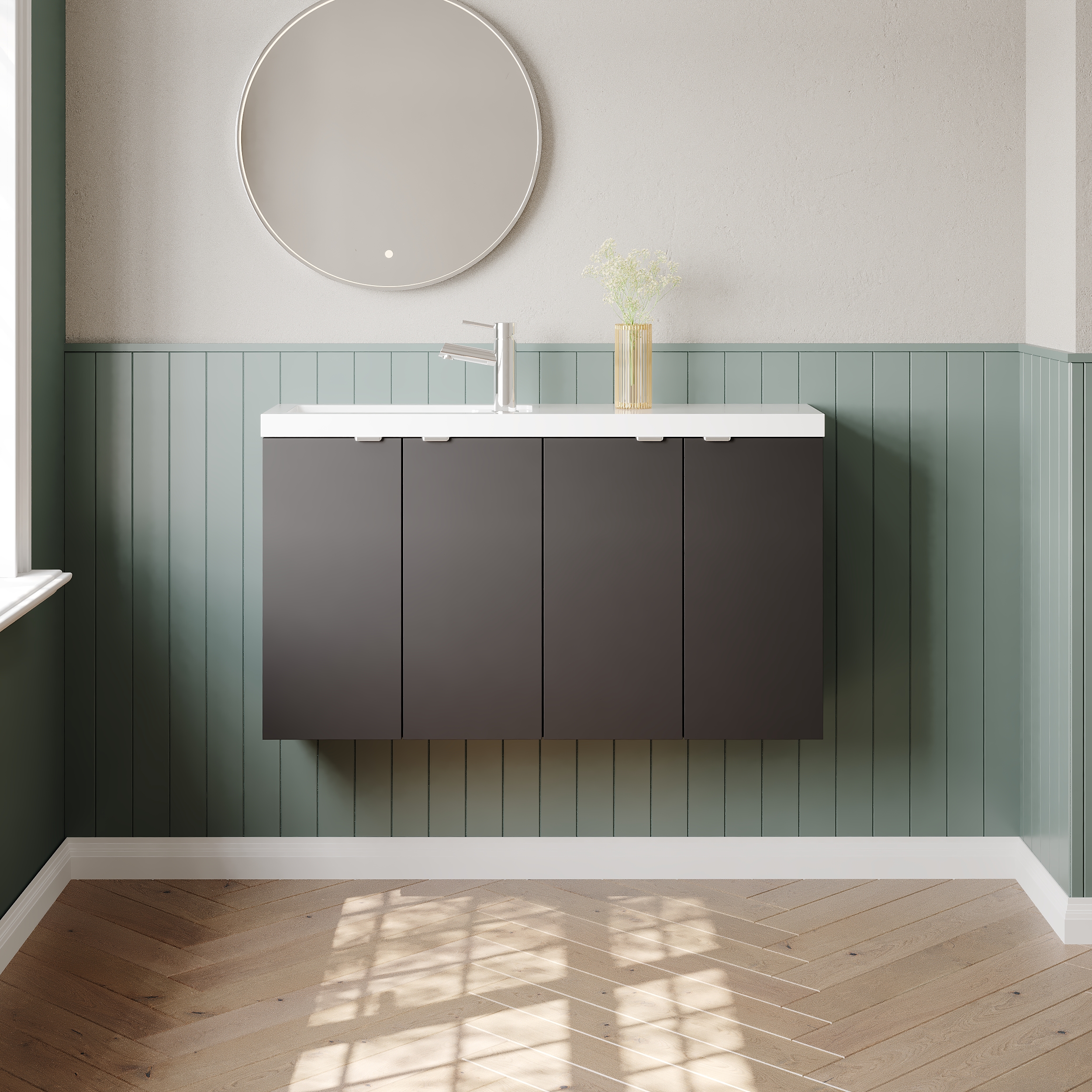 Hudson Reed Fusion Compact 1000mm Charcoal Black Wall Hung 2 Door Vanity Unit & Basin