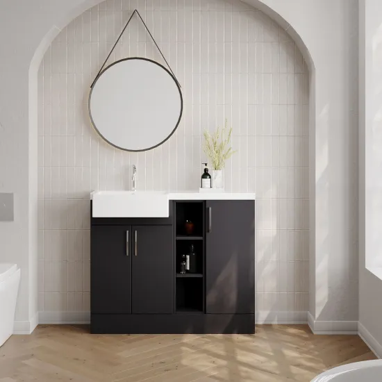 Nuie Lux Krest 1000mm Compact Combination Unit & Basin - Left Hand - Soft Black