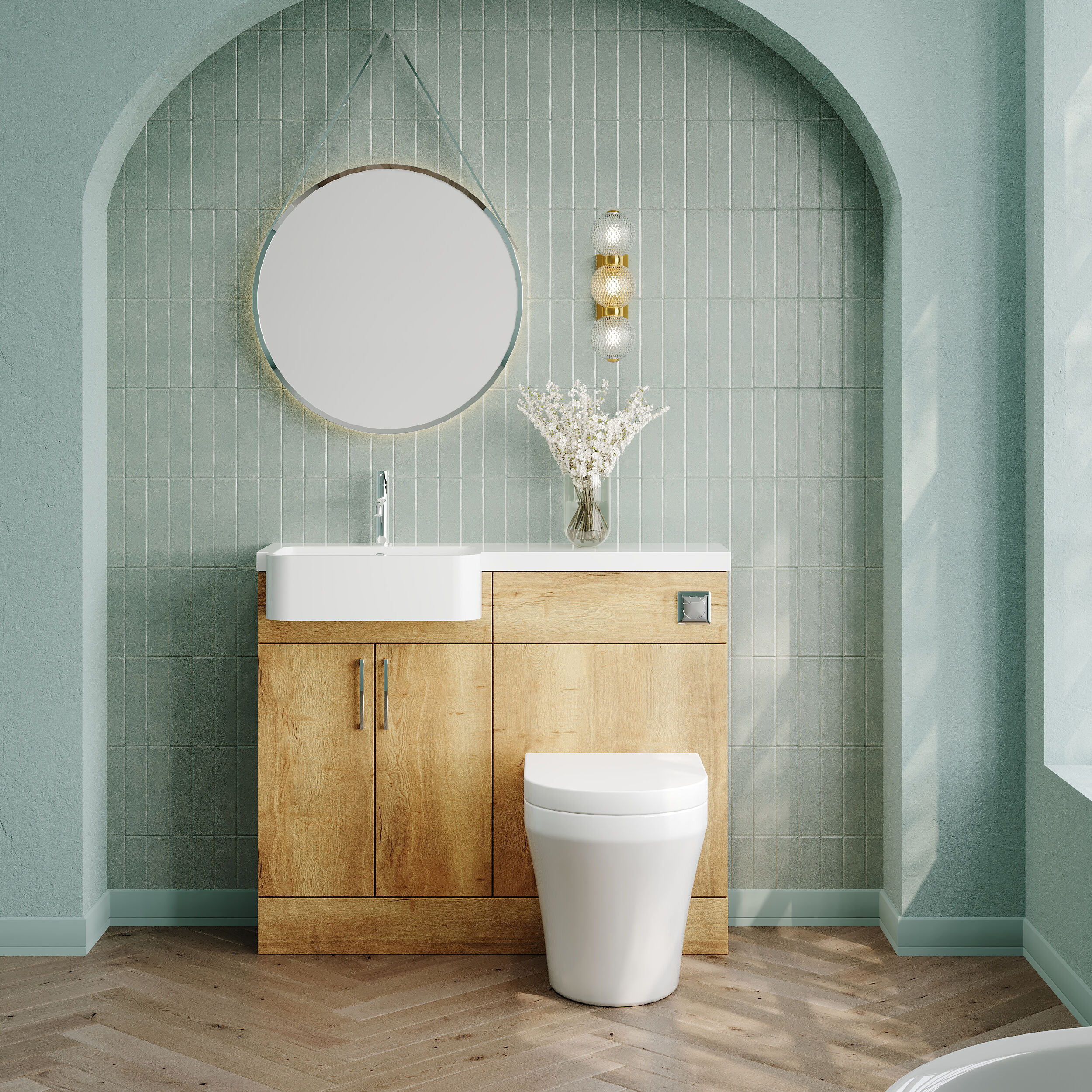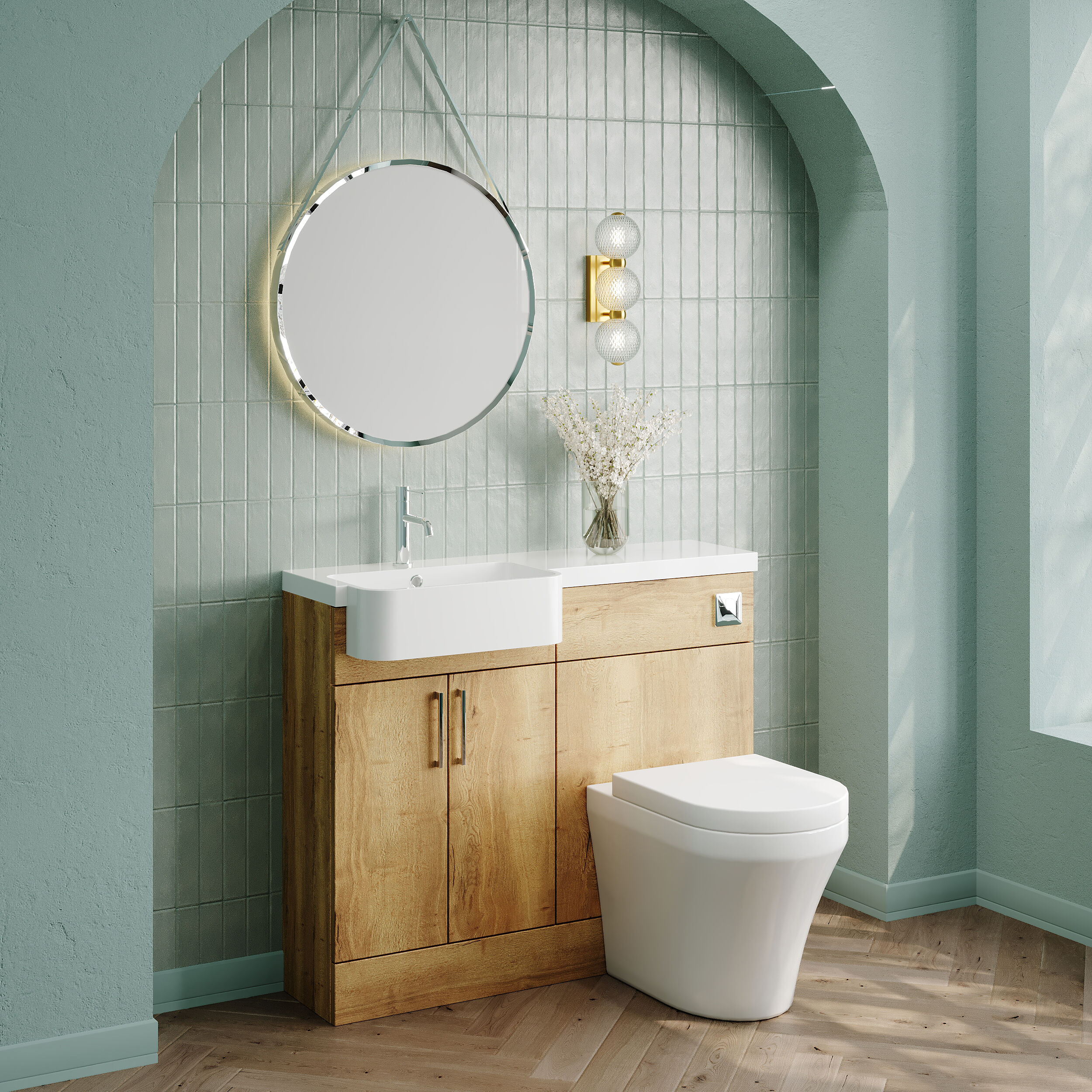 Nuie Lux Krest 1000mm Compact Combination Unit & Basin - Left Hand - Autumn Oak