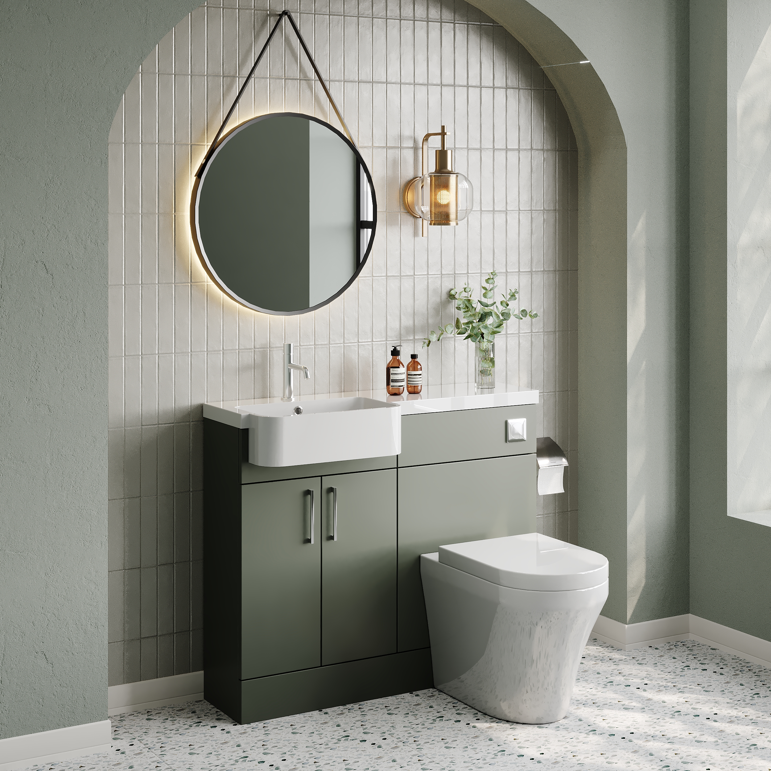Nuie Lux Krest 1000mm Compact Combination Unit & Basin - Left Hand - Fern Green