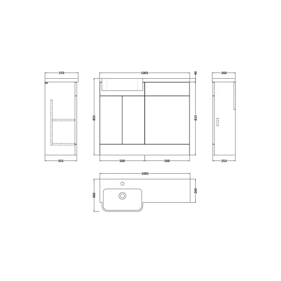 Supplied with luxury polymarble left-hand basin, predrilled with 1 tap hole and high quality contemporary handles