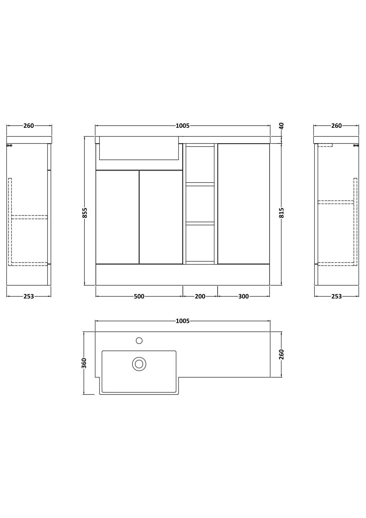 Supplied with luxury polymarble left-hand basin, predrilled with 1 tap hole and high quality contemporary handles