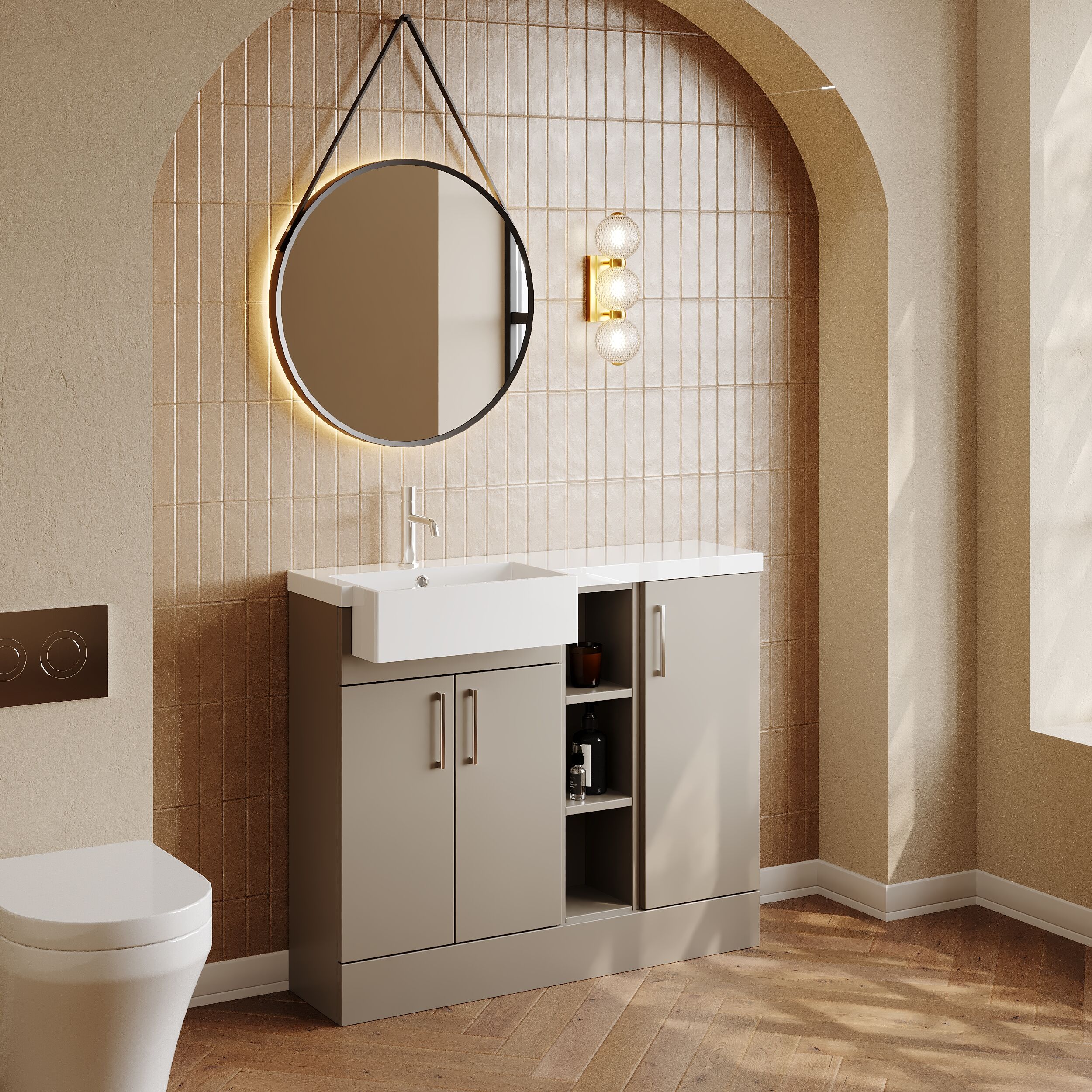 Nuie Lux Krest 1000mm Compact Combination Unit & Basin - Left Hand - Pebble Grey