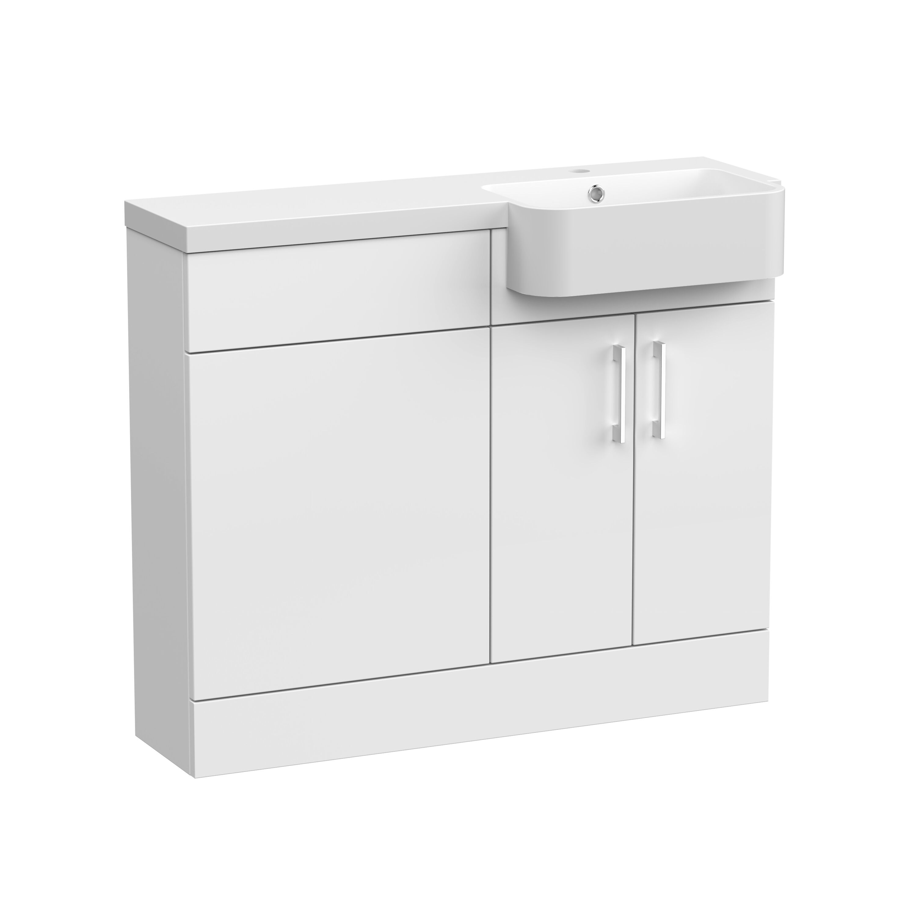 Nuie Lux Krest 1000mm Right Hand Matt White Combination Unit & Basin With Soft Close Doors, Rigid