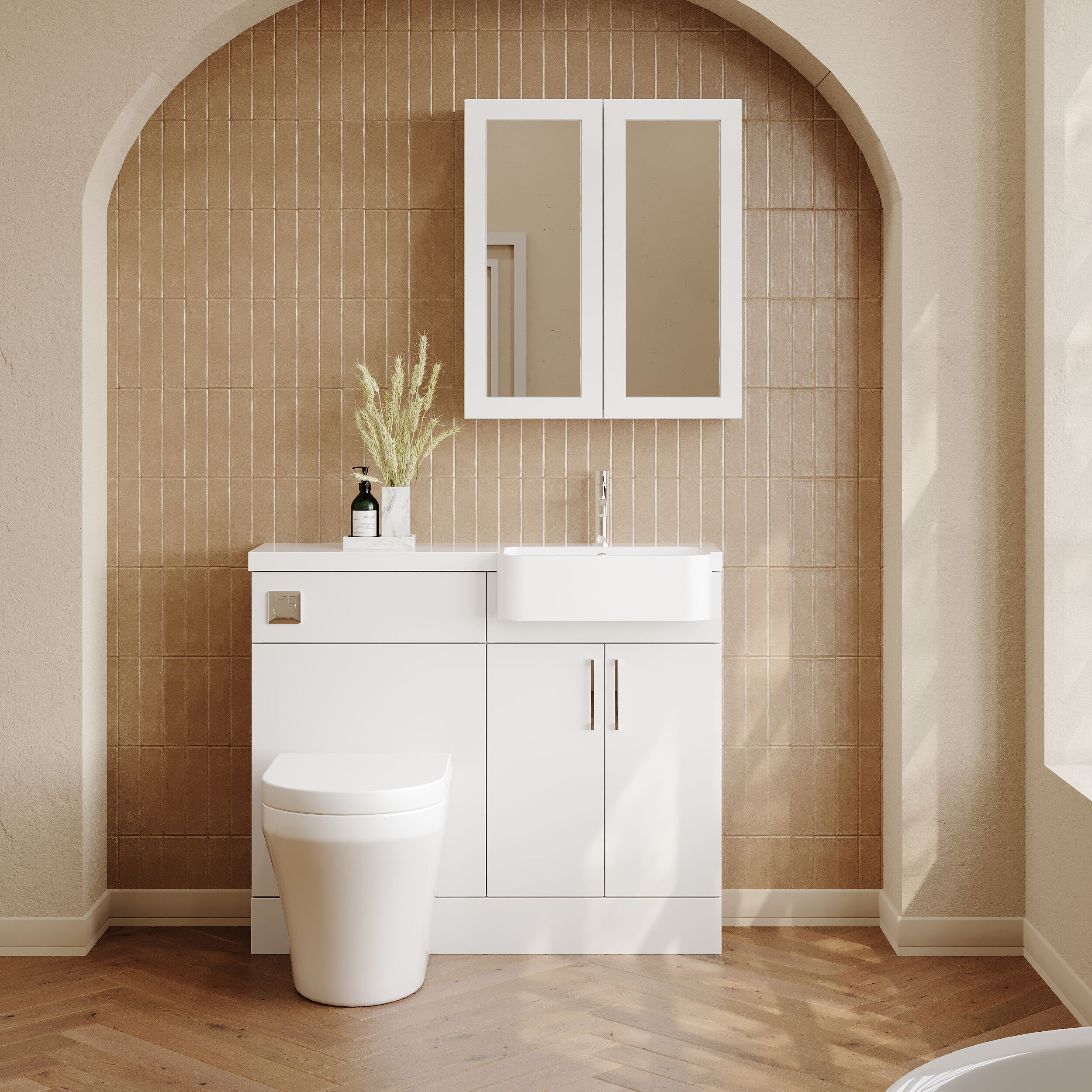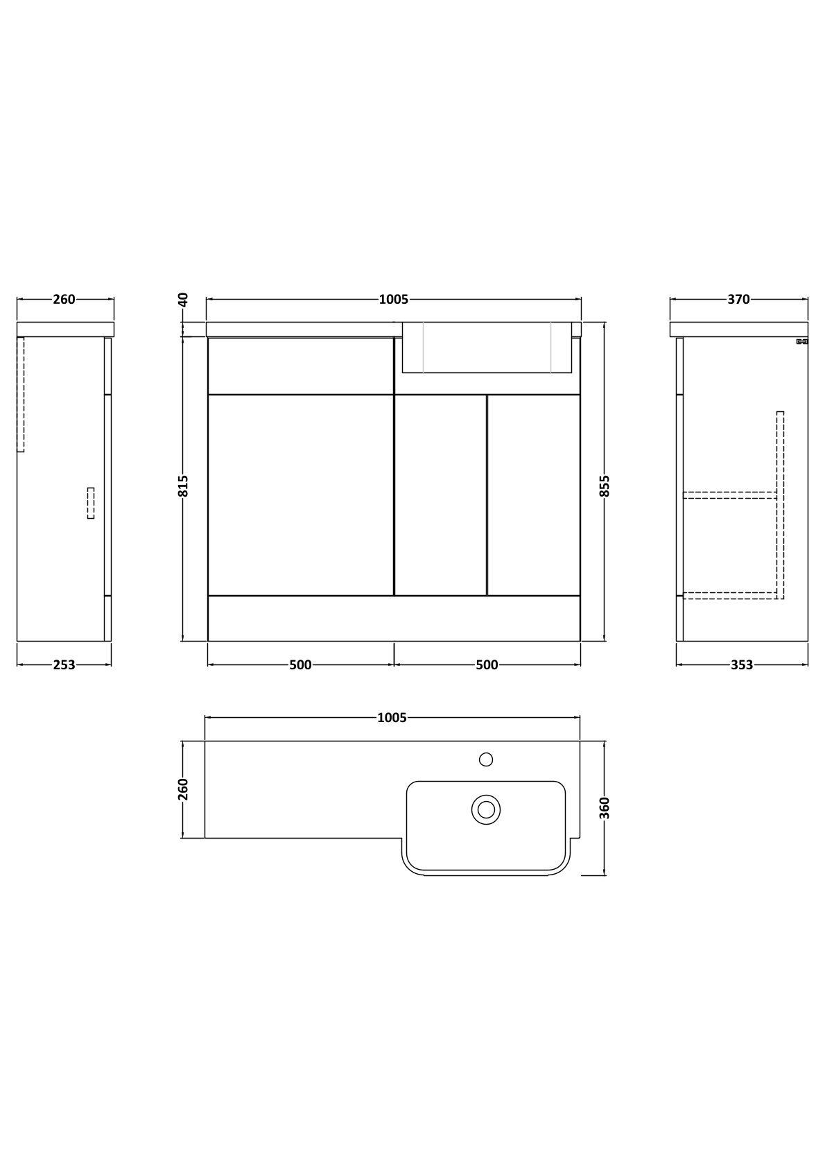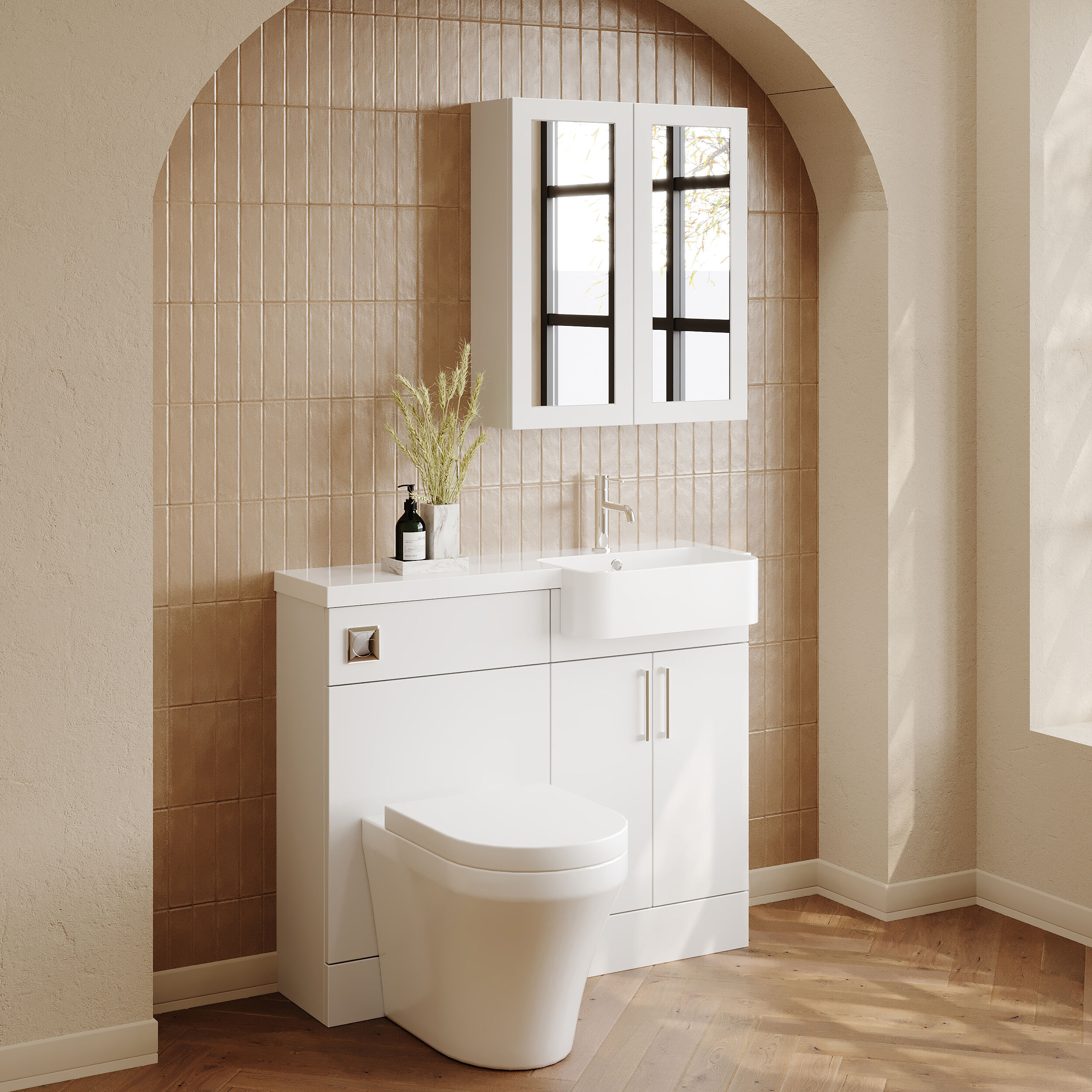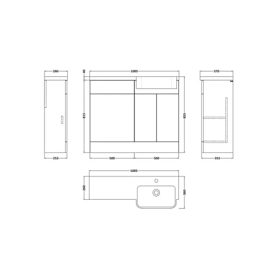 Nuie Lux Krest 1000mm Compact Combination Unit & Basin - Right Hand - Matt White