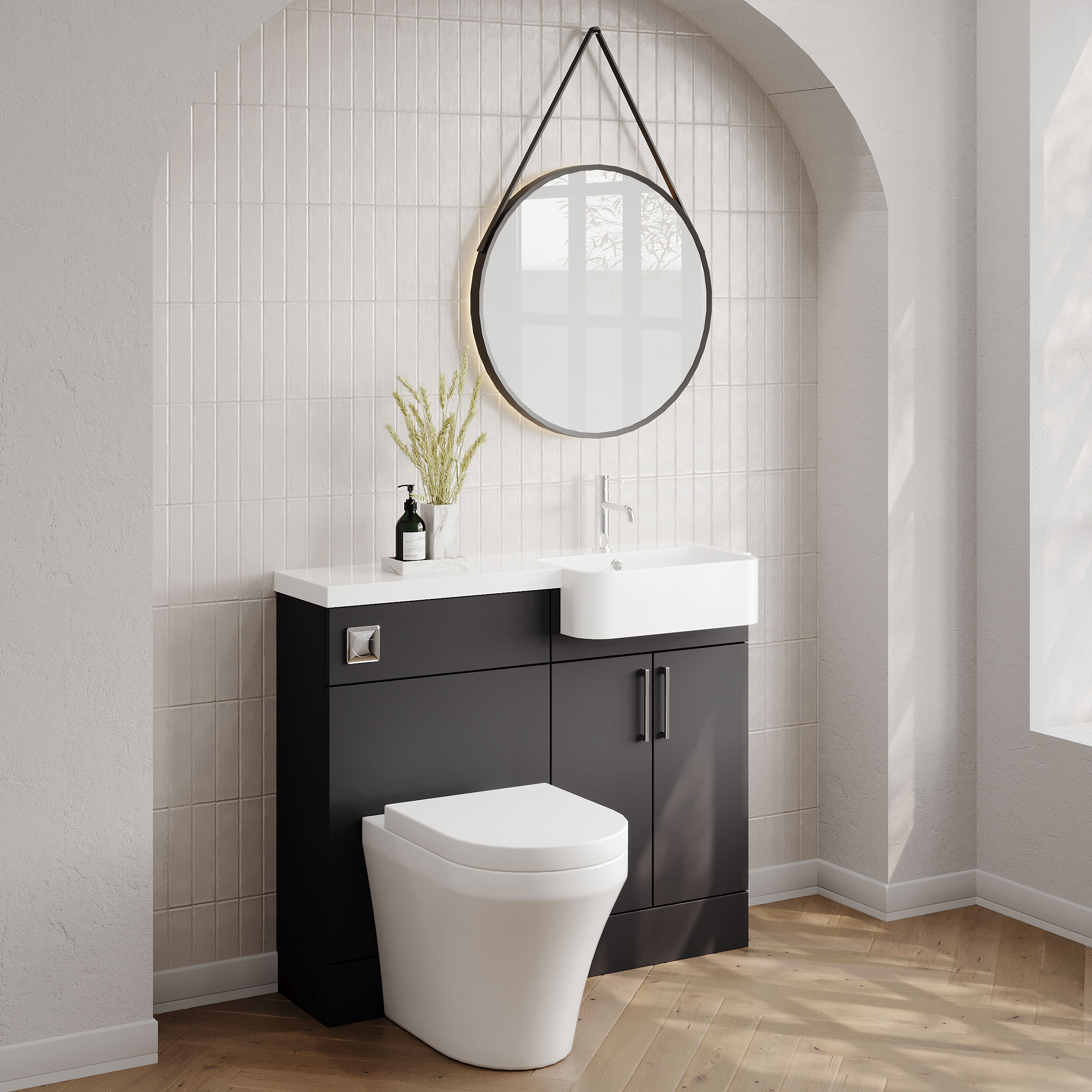 Nuie Lux Krest 1000mm Compact Combination Unit & Basin - Right Hand - Soft Black