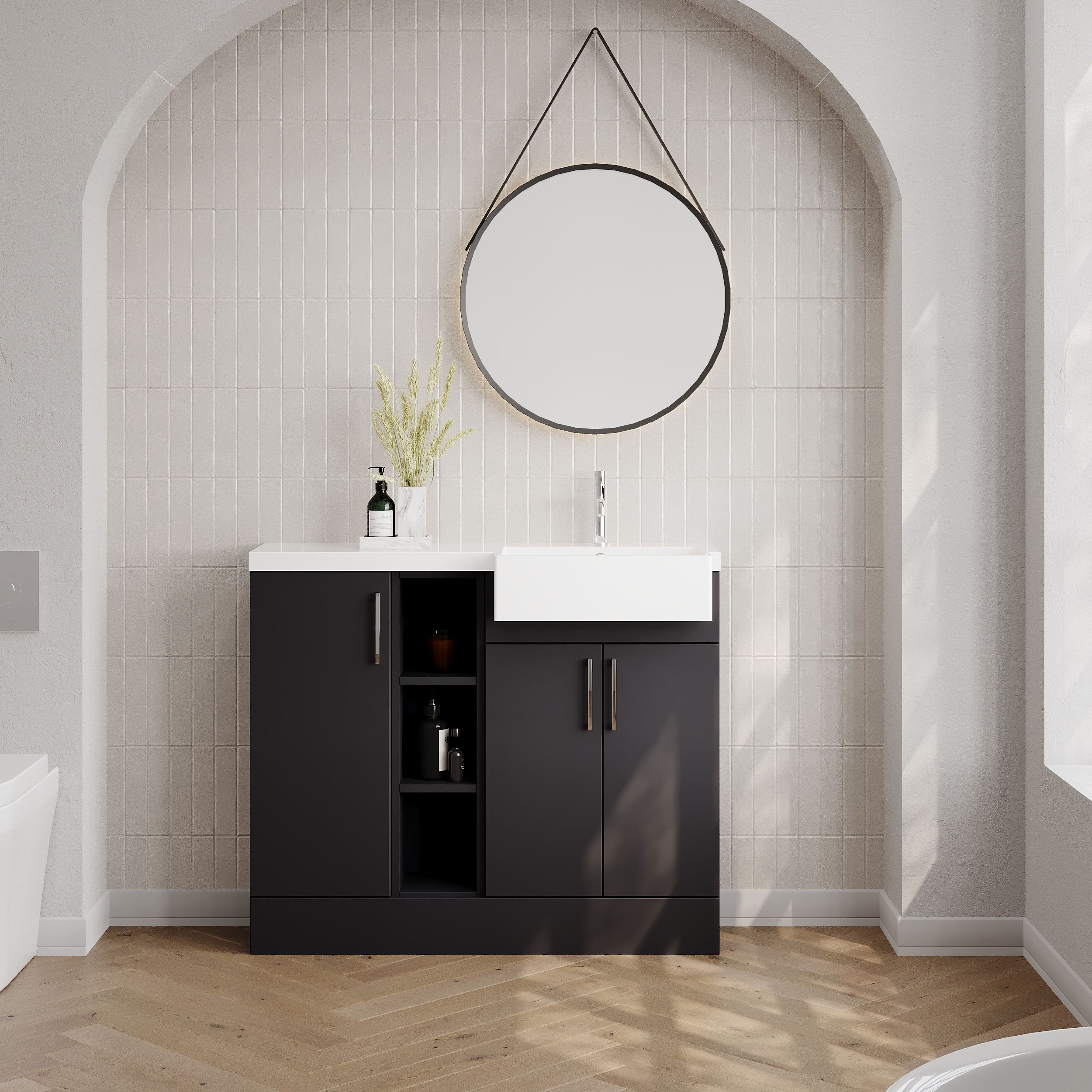 Nuie Lux Krest 1005mm Soft Black Combination Unit & Basin Right Hand
