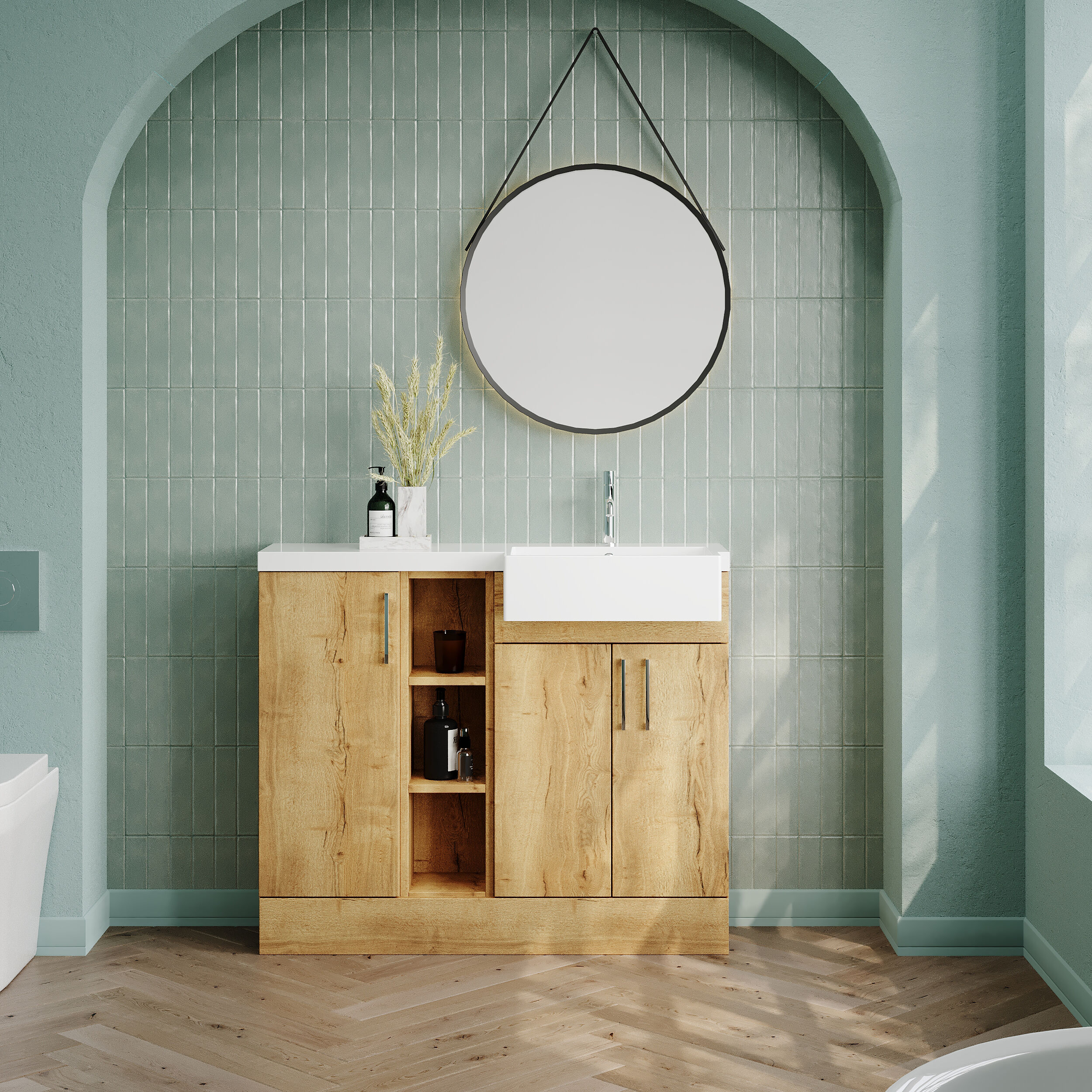 Nuie Lux Krest 1000mm Autumn Oak Right Hand Floor Standing Combination Unit With Basin Soft Close