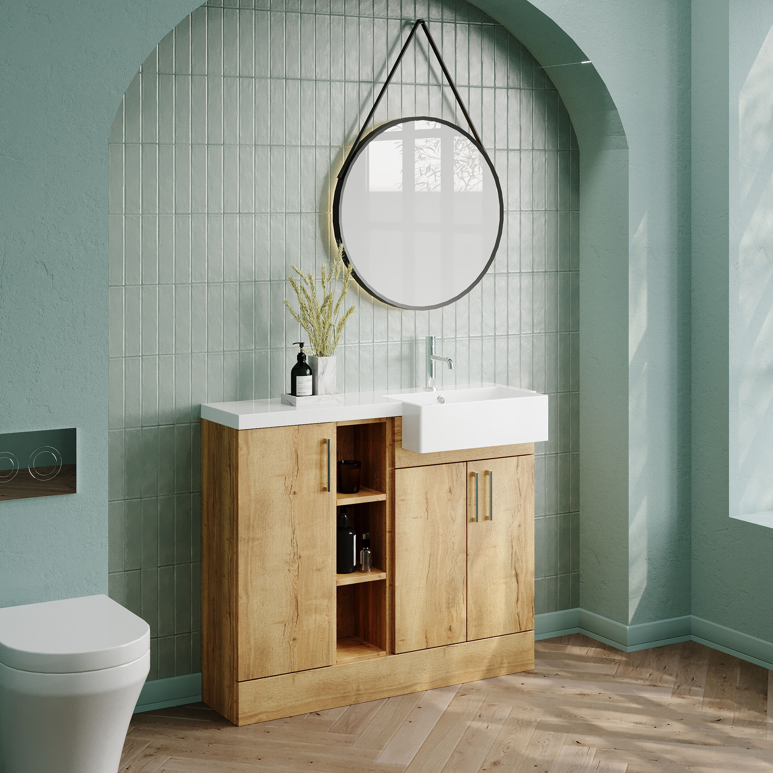 Nuie Lux Krest 1000mm Compact Combination Unit & Basin - Right Hand - Autumn Oak