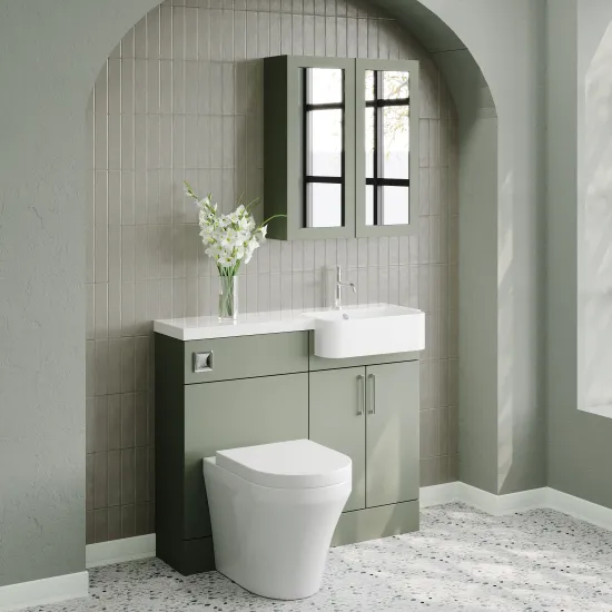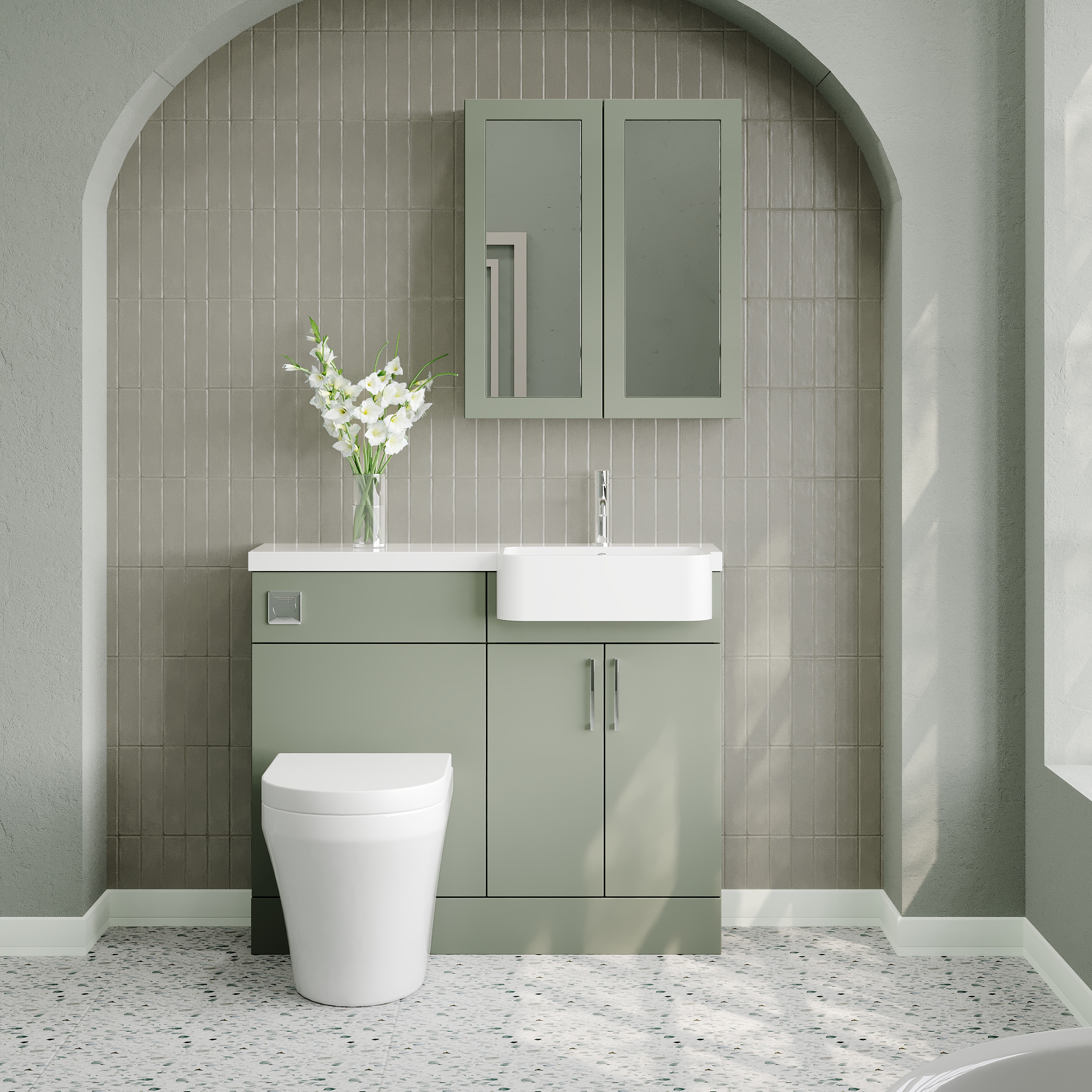Nuie Lux Krest 1000mm Compact Combination Unit & Basin - Right Hand - Fern Green