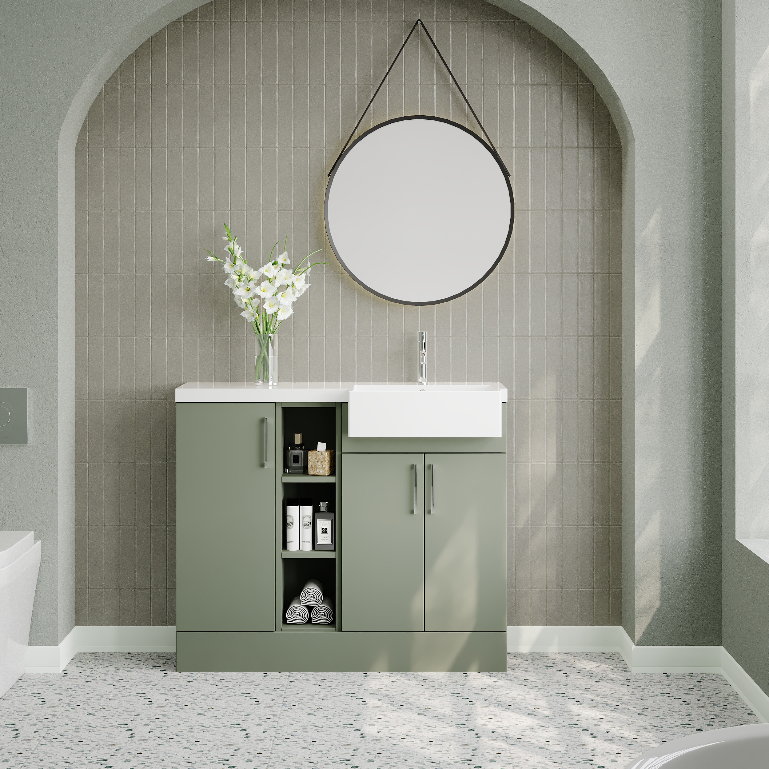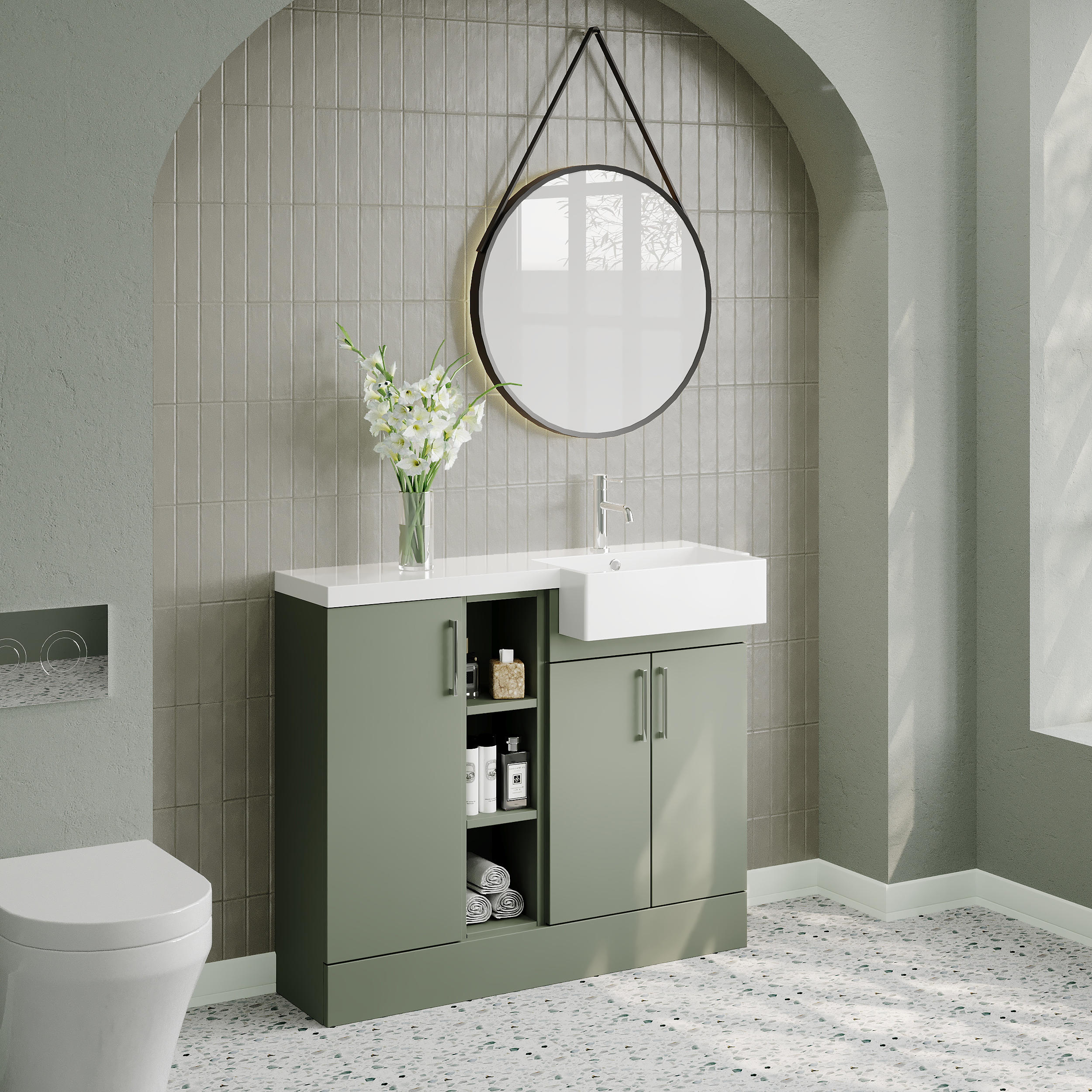 Nuie Lux Krest 1000mm Compact Combination Unit & Basin - Right Hand - Fern Green