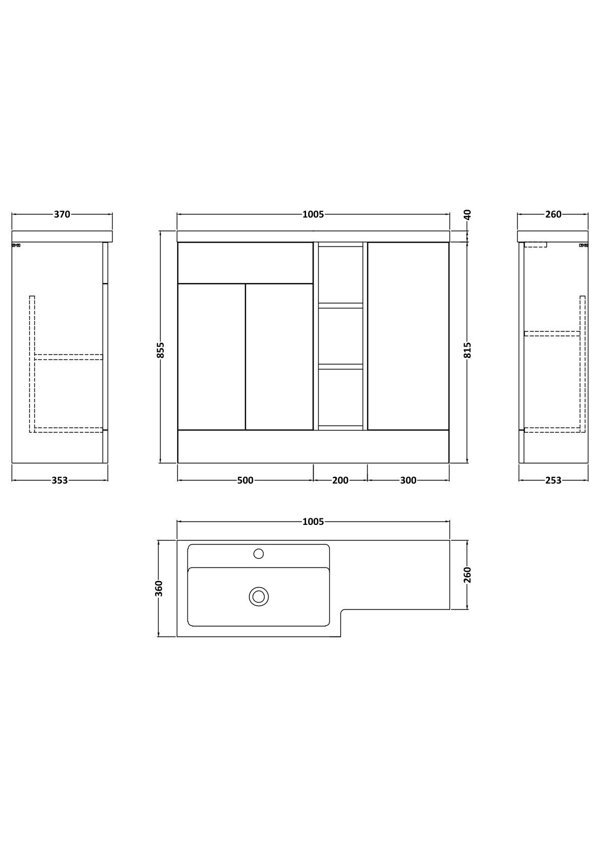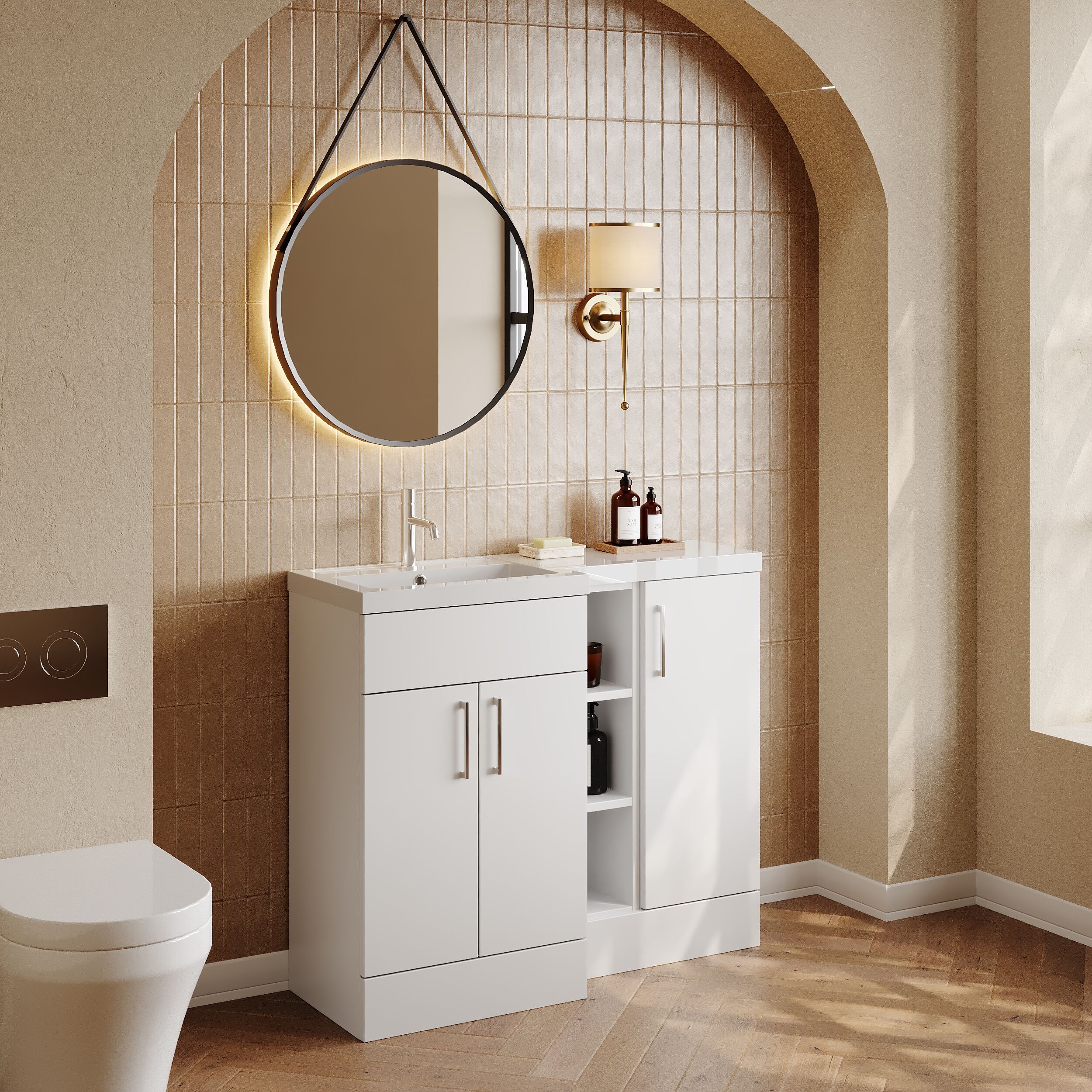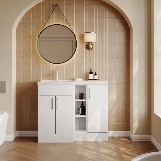 Nuie Lux Krest 1000mm Full Depth Combination Unit & Basin - Left Hand - Matt White