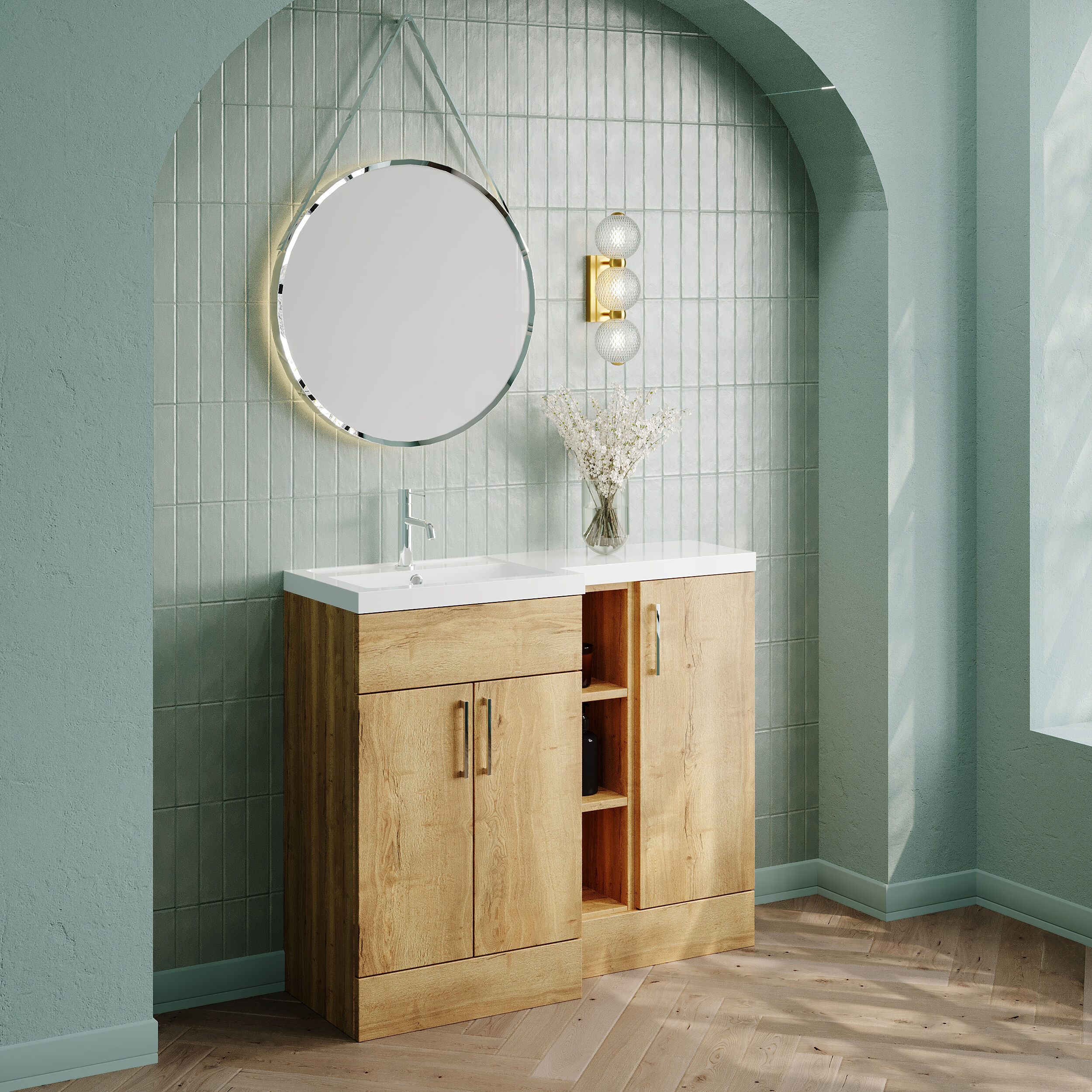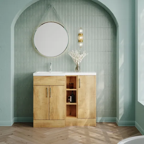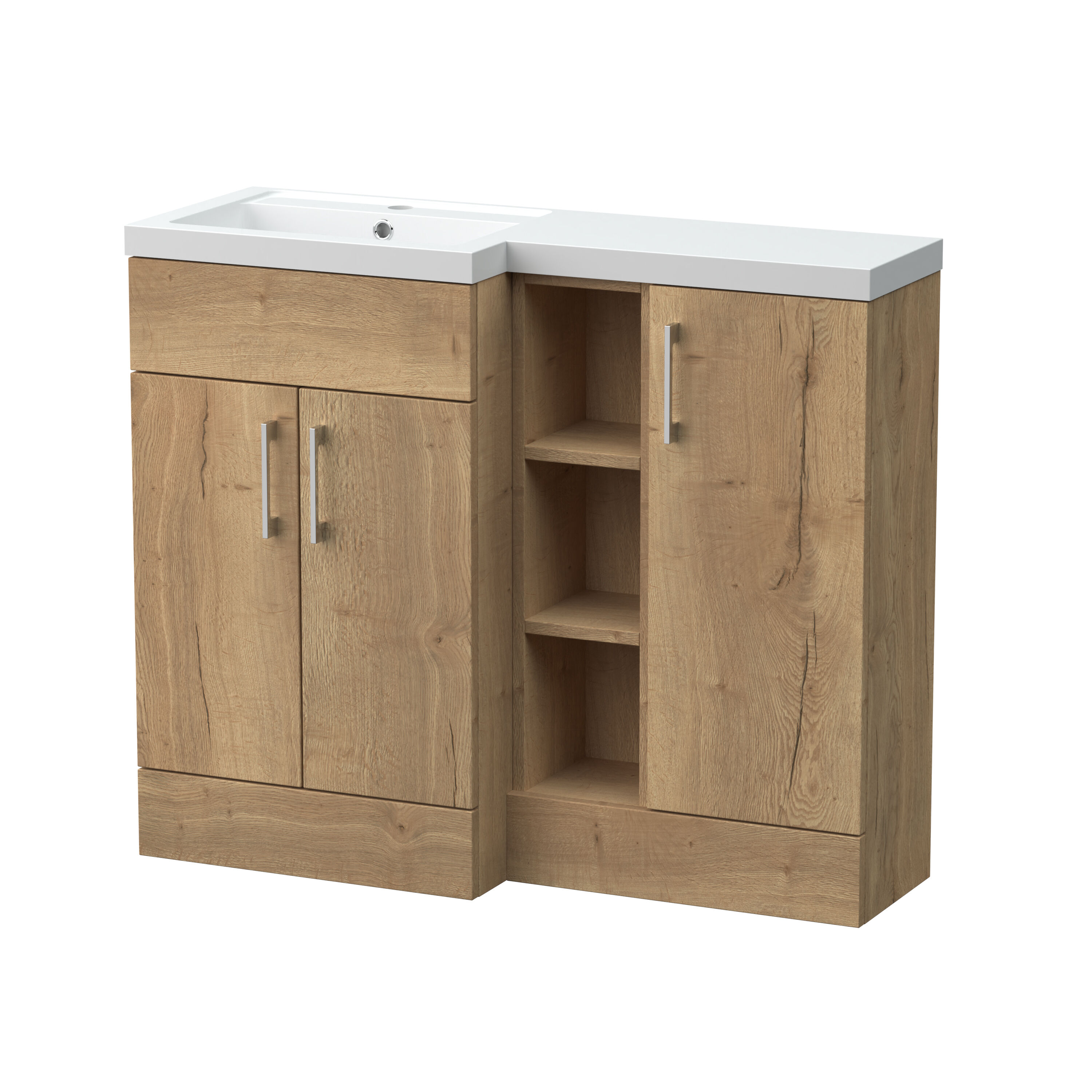 Nuie Lux Krest 1005mm Left Hand Autumn Oak Combination Unit & Basin Rigid Soft Close Doors With Handles