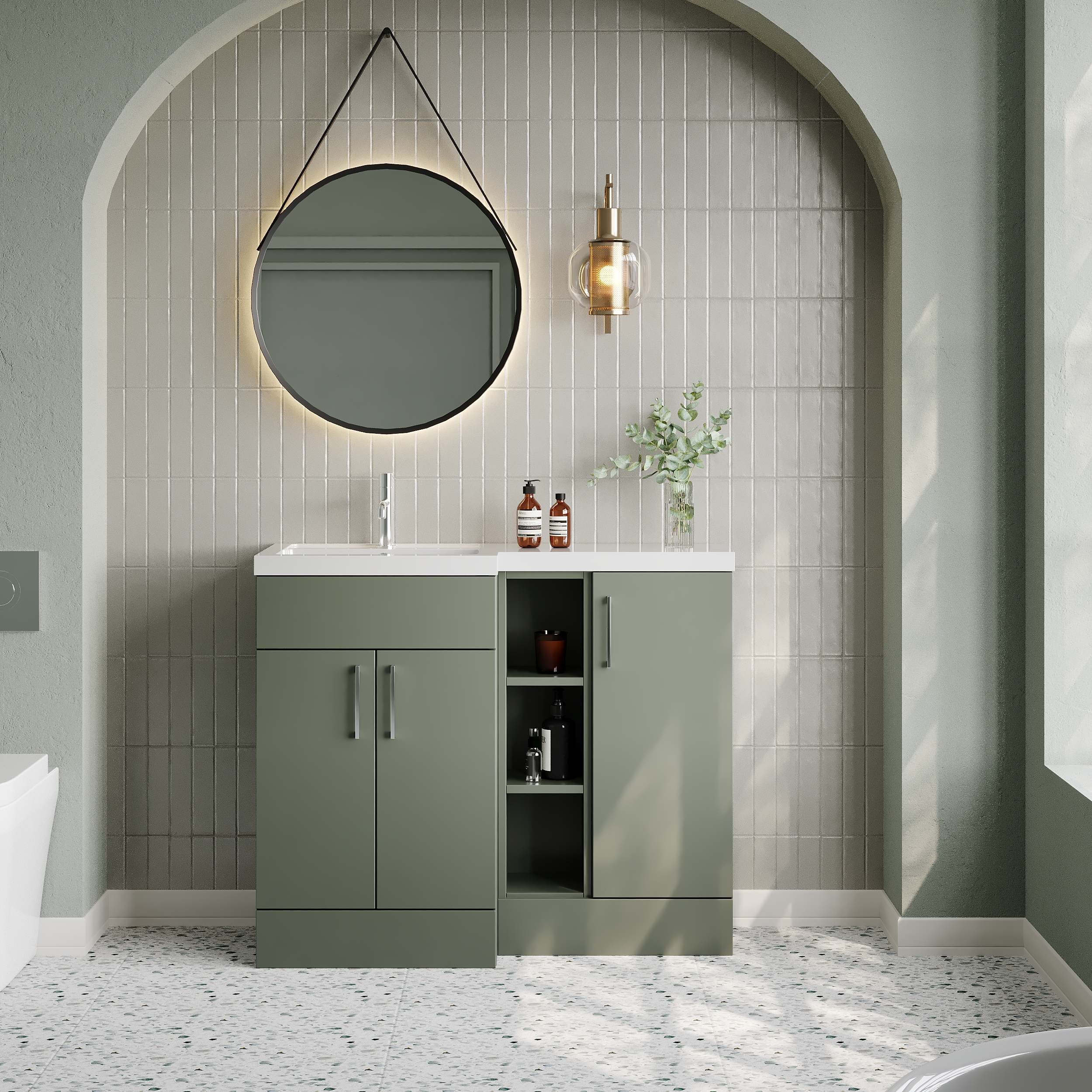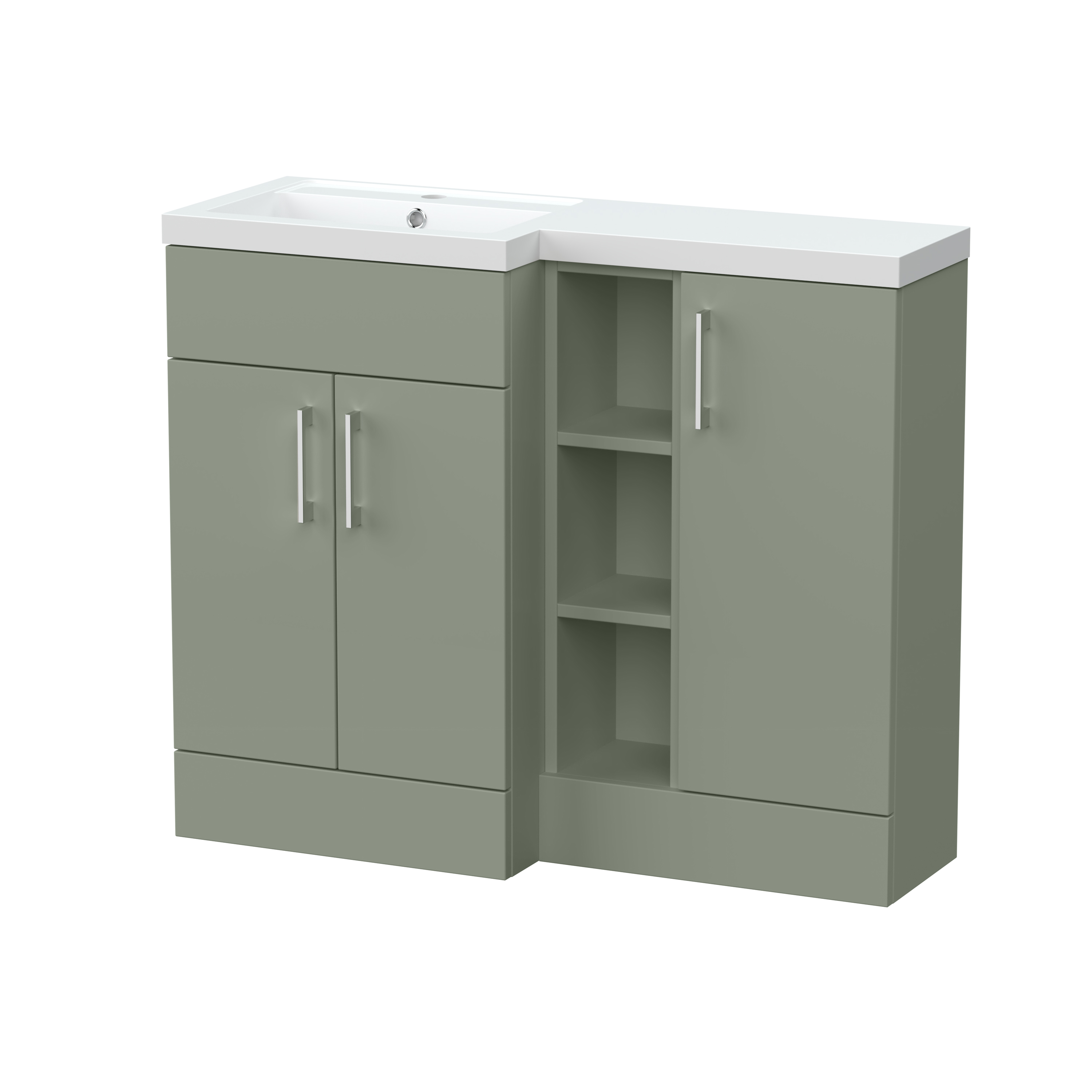 Nuie Lux Krest 1000mm Full Depth Combination Unit & Basin - Left Hand - Fern Green