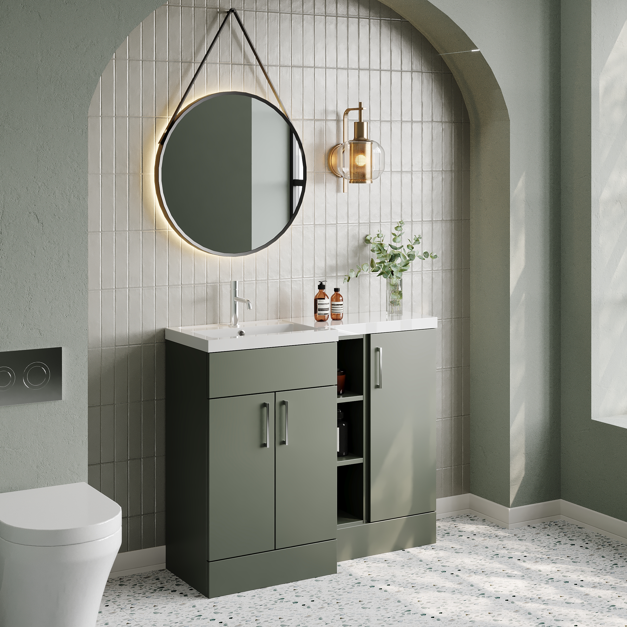 Nuie Lux Krest 1000mm Fern Green Left Hand Combination Unit & Basin Soft Close Rigid