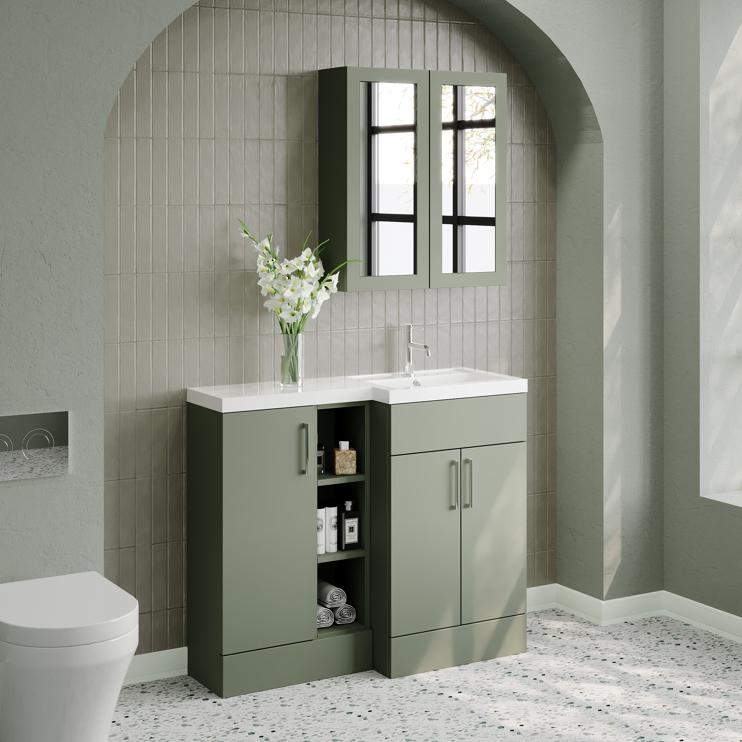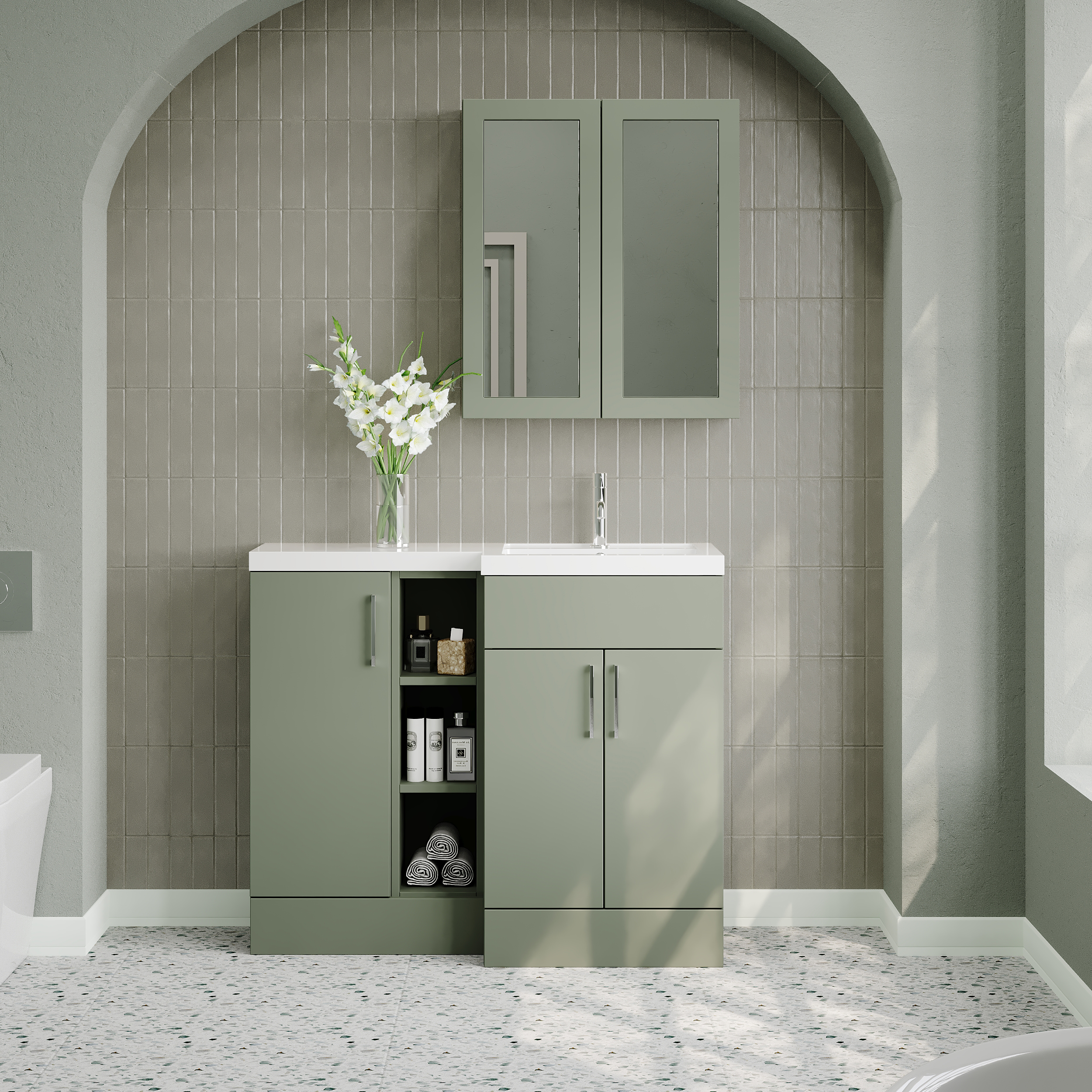 Nuie Lux Krest 1000mm Full Depth Combination Unit & Basin - Right Hand - Fern Green