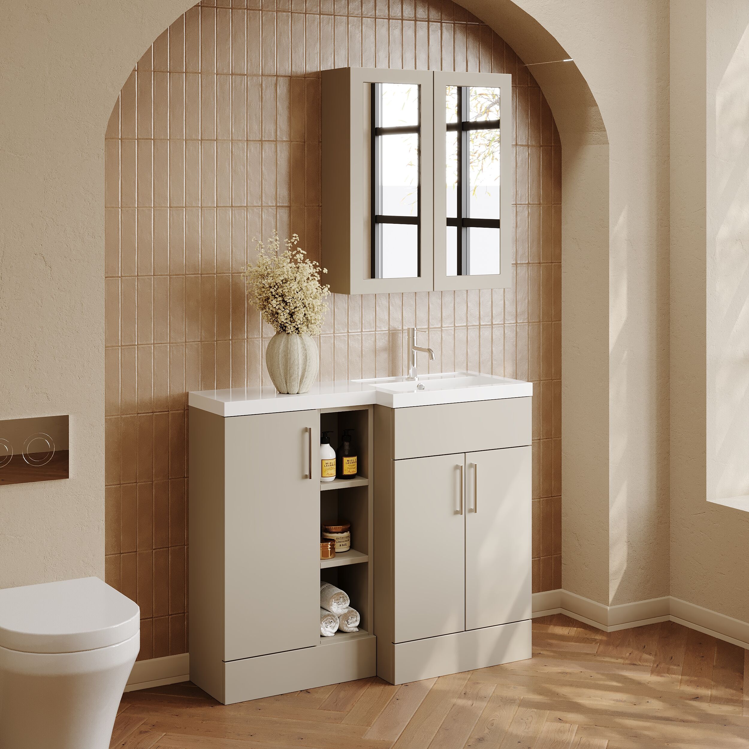 Nuie Lux Krest 1000mm Full Depth Combination Unit & Basin - Right Hand - Pebble Grey