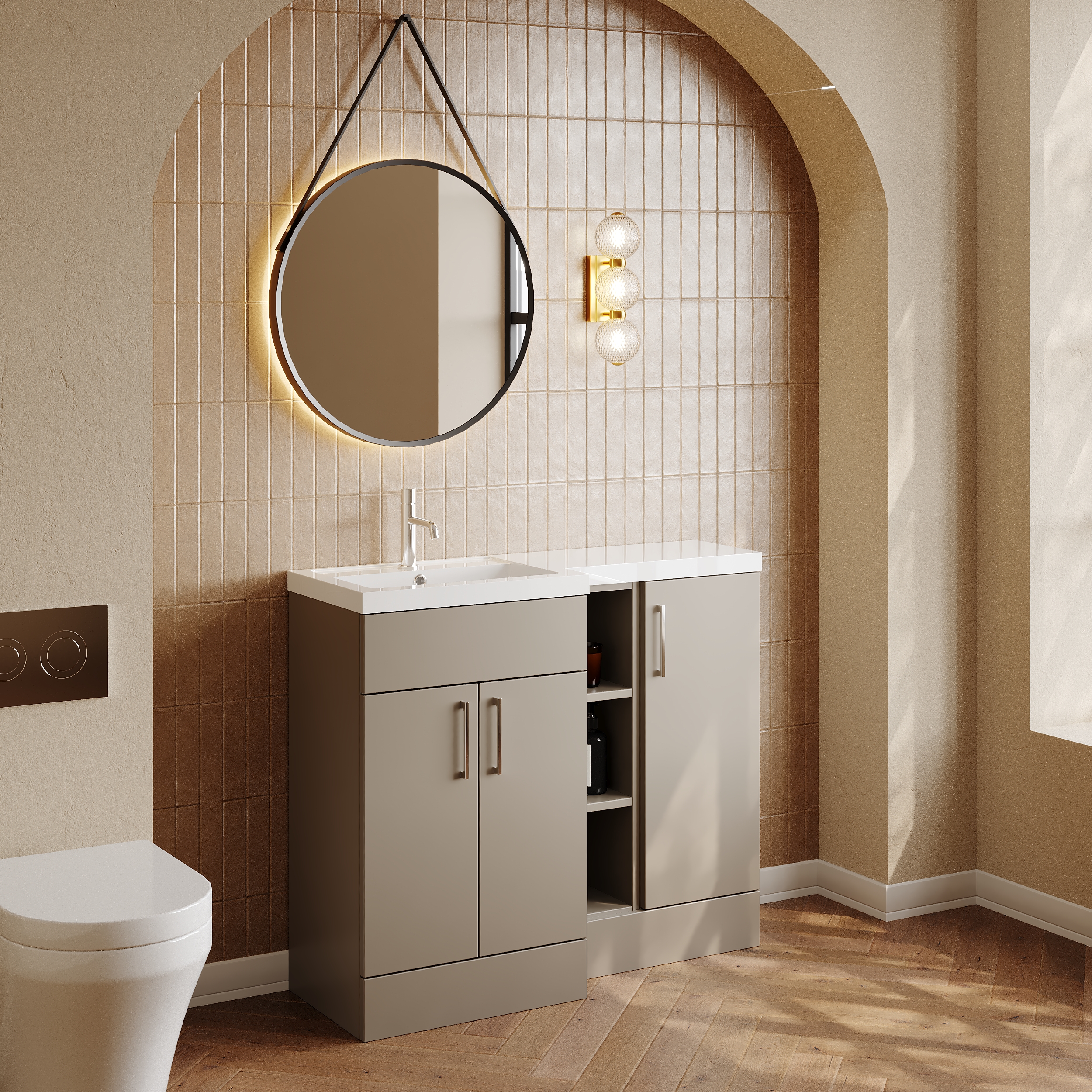 Nuie Lux Krest 1000mm Pebble Grey Combination Unit & L-Shaped Basin Left Hand With Soft Close