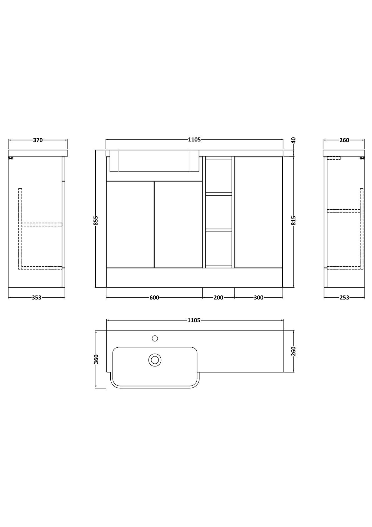 Supplied with luxury polymarble left-hand basin, predrilled with 1 tap hole and high quality contemporary handles