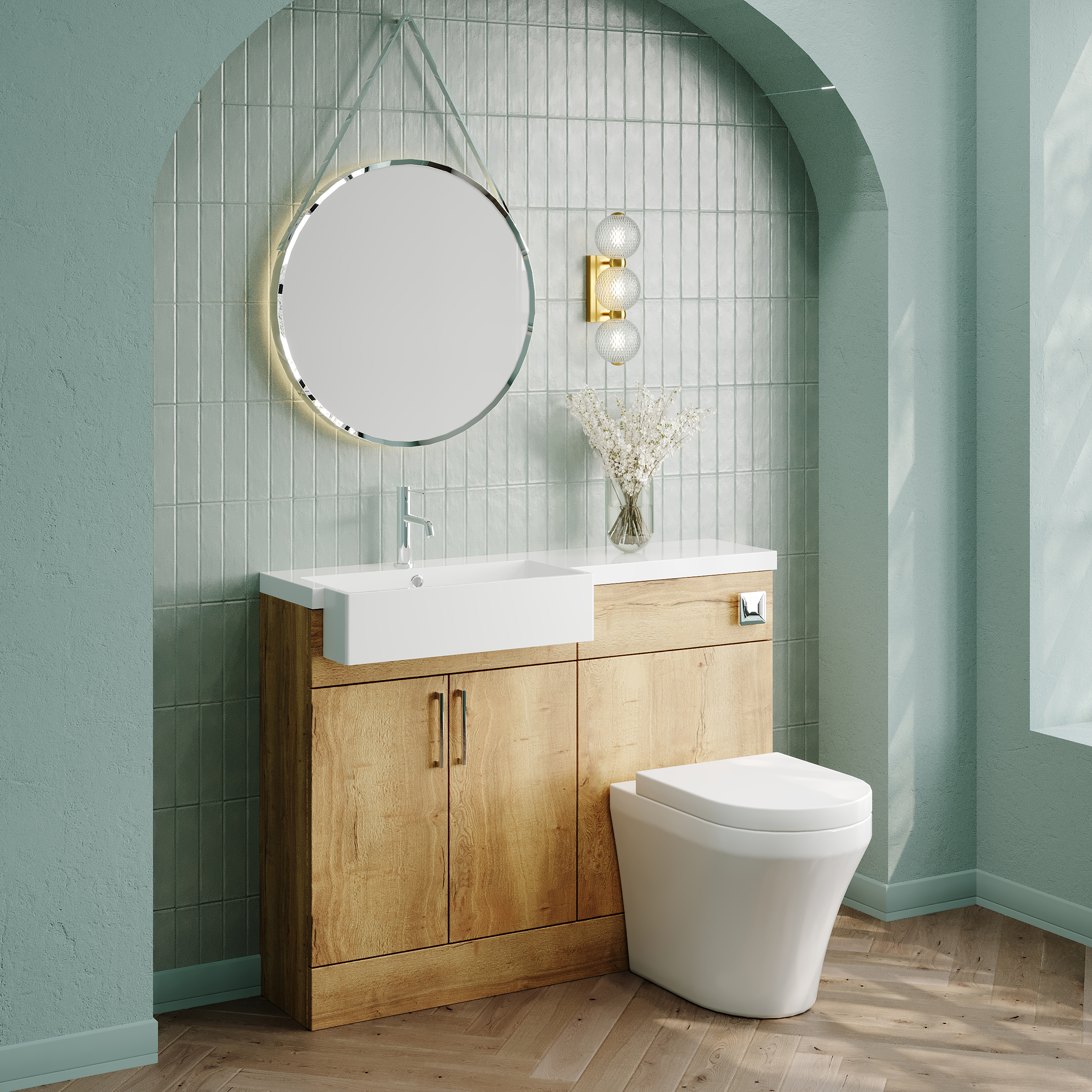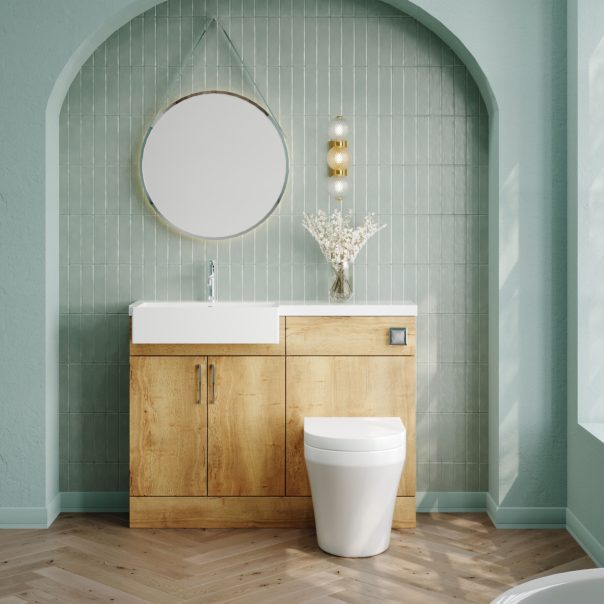 Nuie Lux Krest 1100mm Compact Combination Unit & Basin - Left Hand - Autumn Oak
