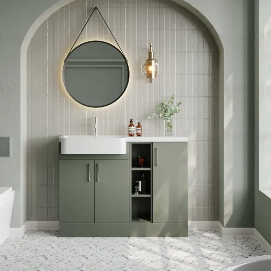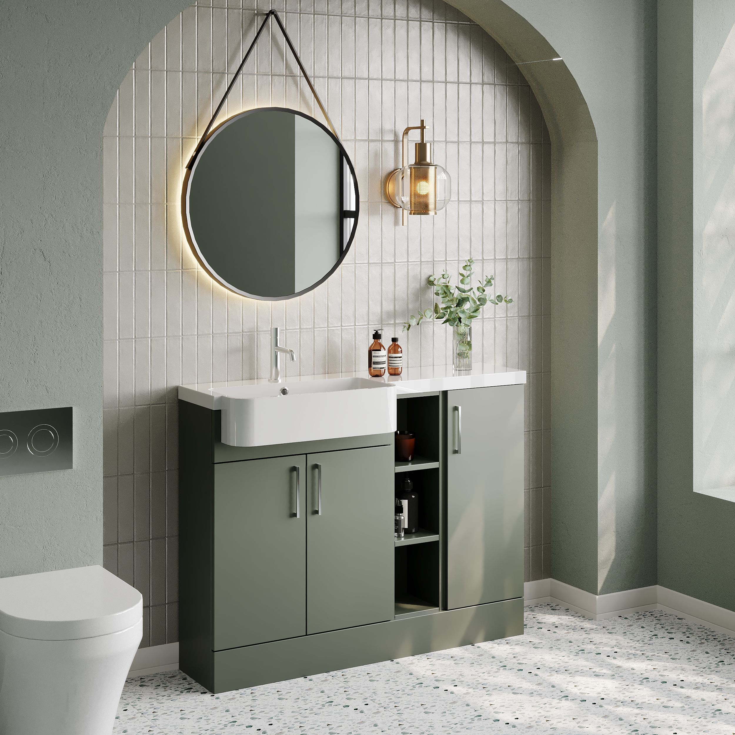 Nuie Lux Krest 1100mm Compact Combination Unit & Basin - Left Hand - Fern Green