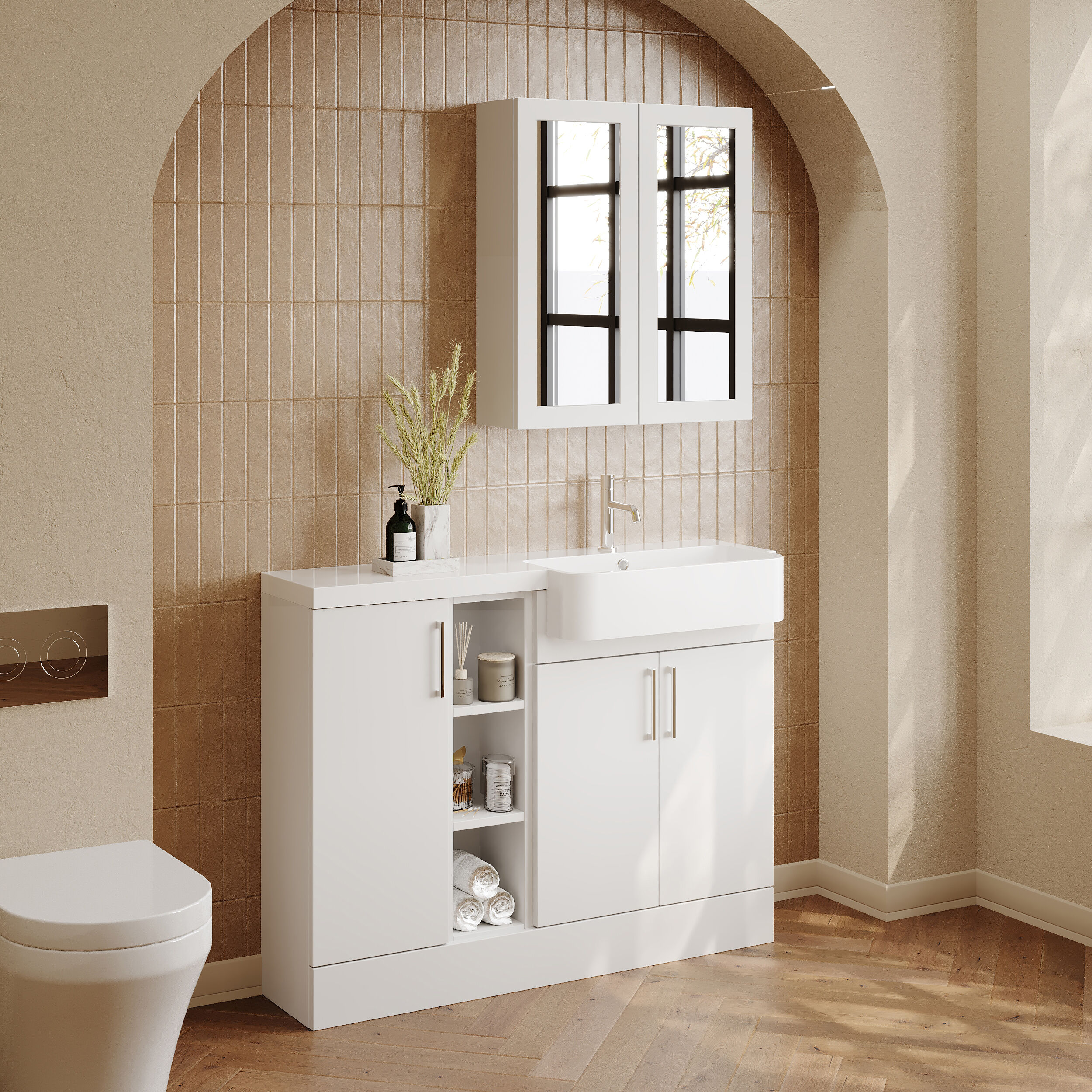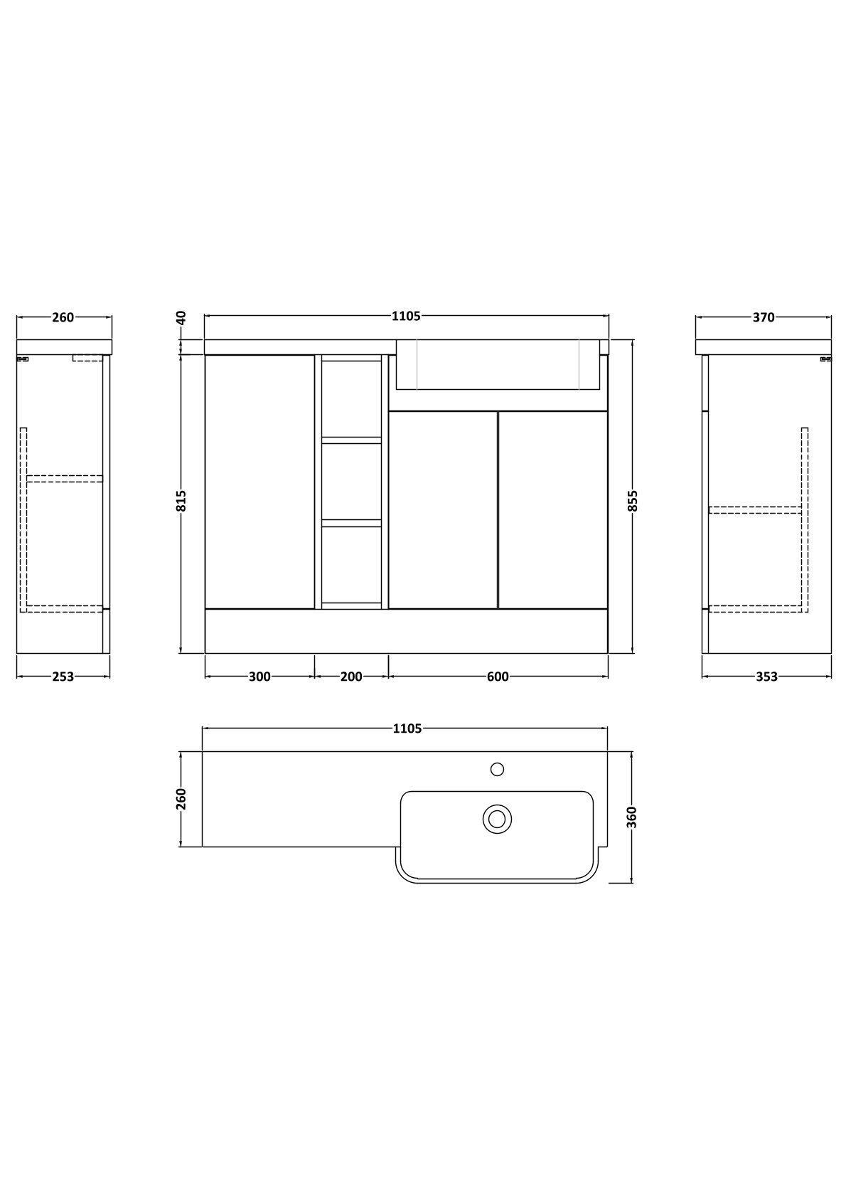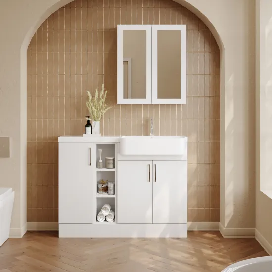 Nuie Lux Krest 1100mm Right Hand Matt White Combination Unit & Basin With Soft Close Doors