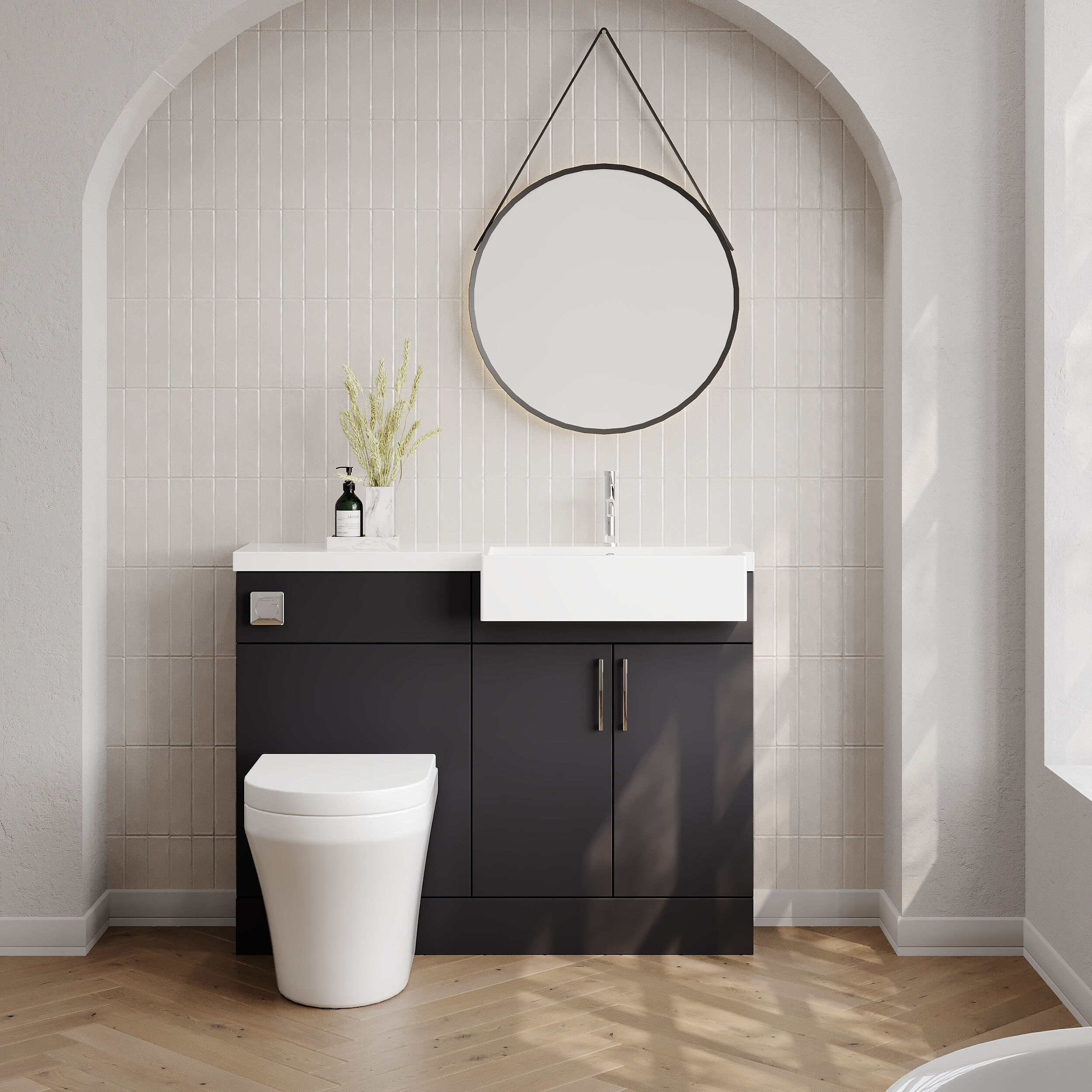 Nuie Lux Krest 1100mm Compact Combination Unit & Basin - Right Hand - Soft Black