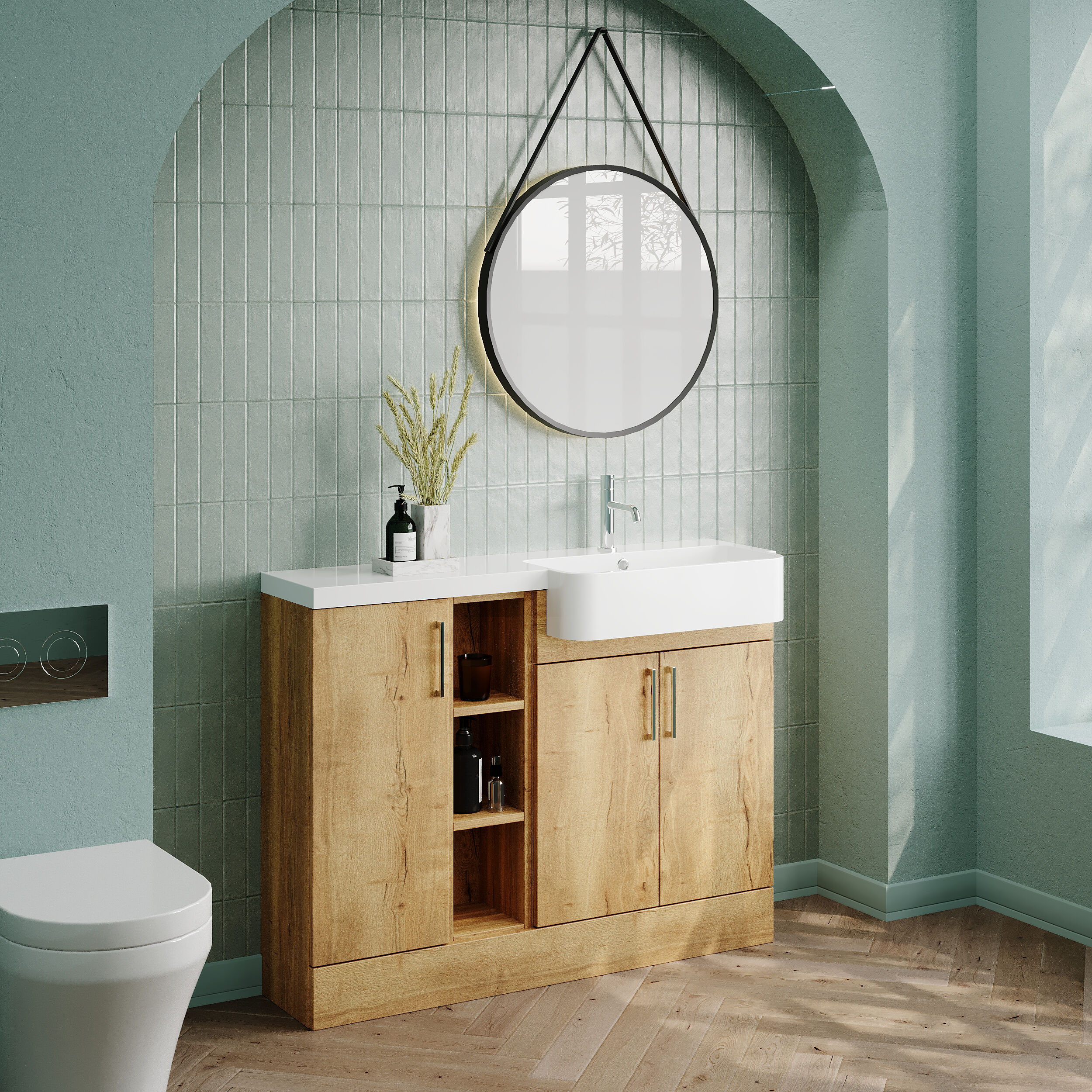 Nuie Lux Krest 1100mm Compact Combination Unit & Basin - Right Hand - Autumn Oak