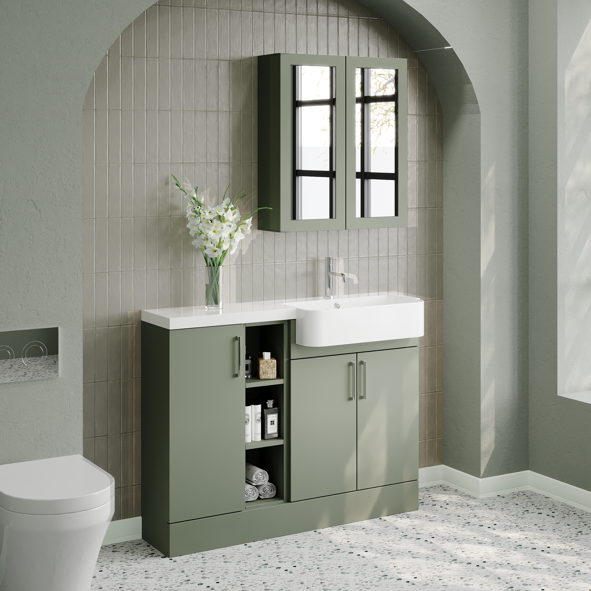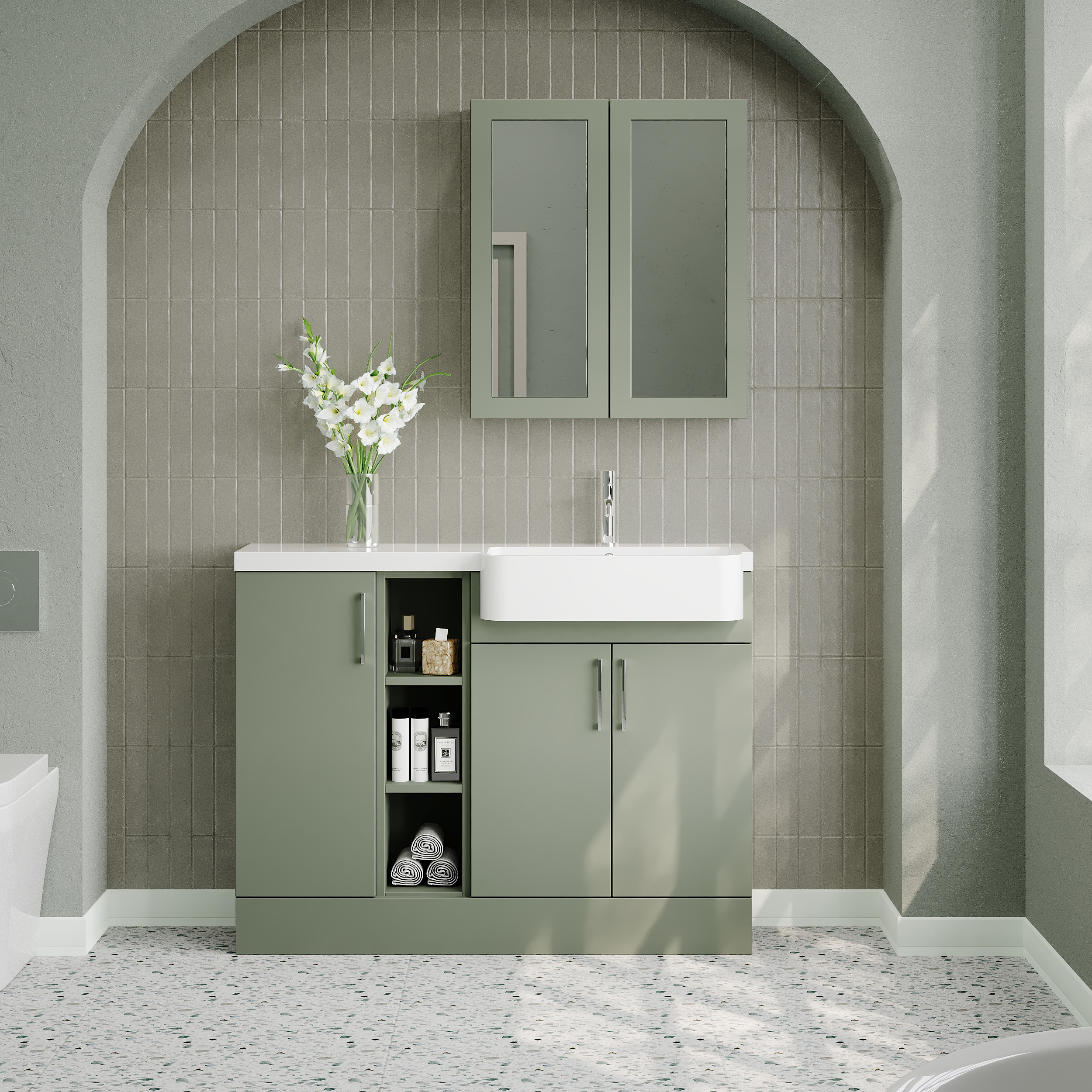 Nuie Lux Krest 1100mm Compact Combination Unit & Basin - Right Hand - Fern Green