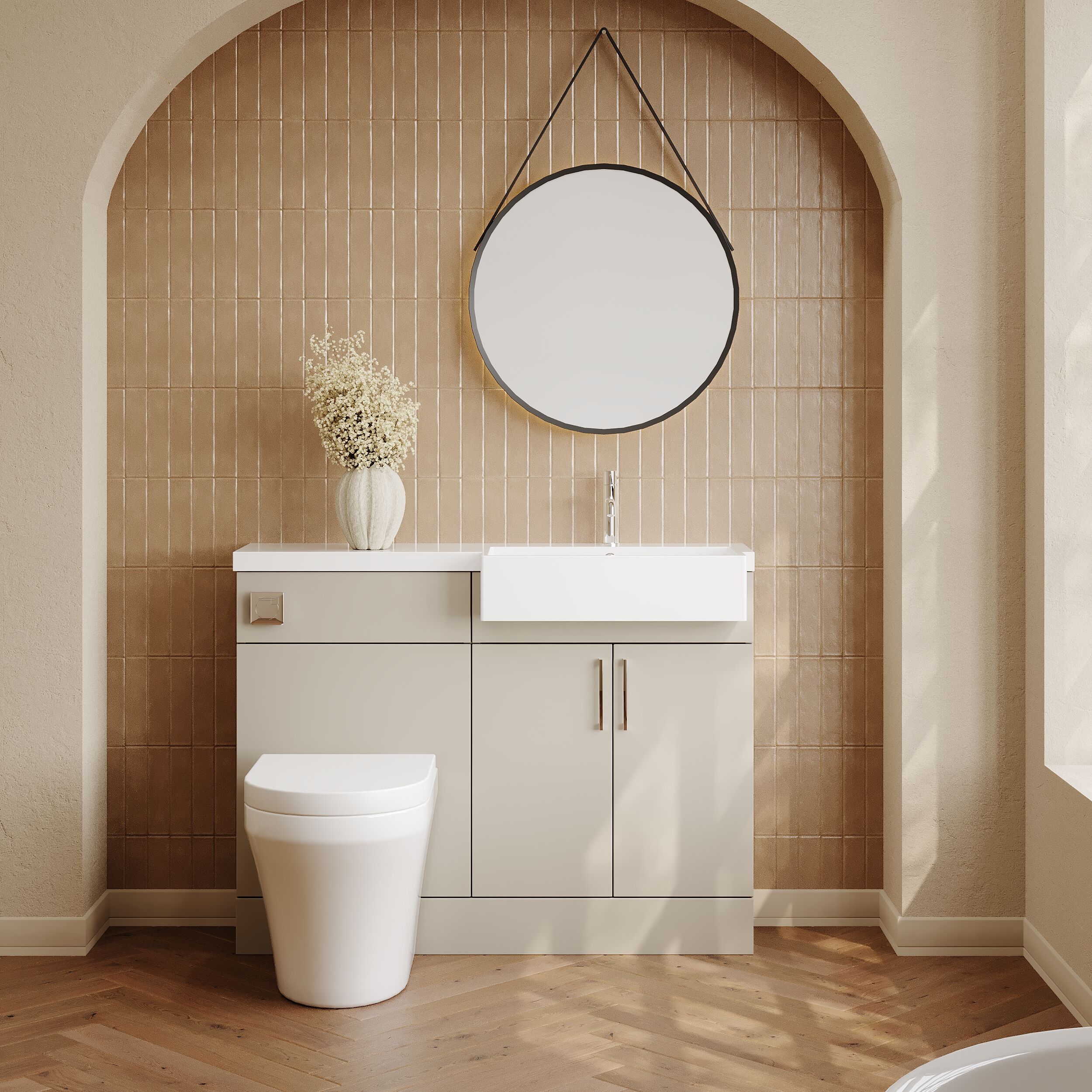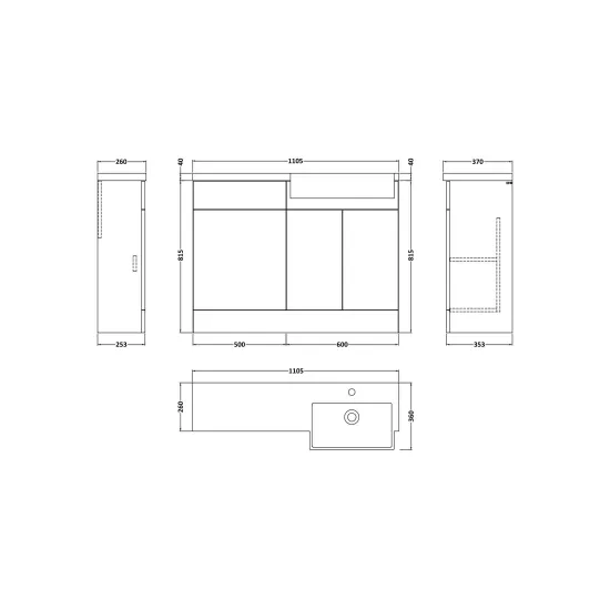 Nuie Lux Krest 1105mm Pebble Grey Right Hand Combination Unit & Basin With Handles