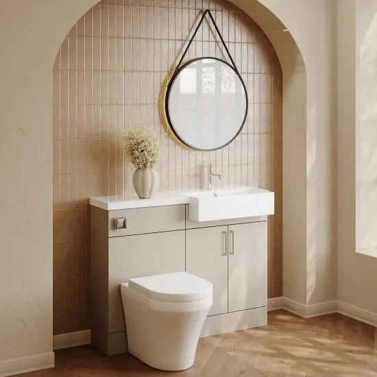 Nuie Lux Krest 1100mm Compact Combination Unit & Basin - Right Hand - Pebble Grey