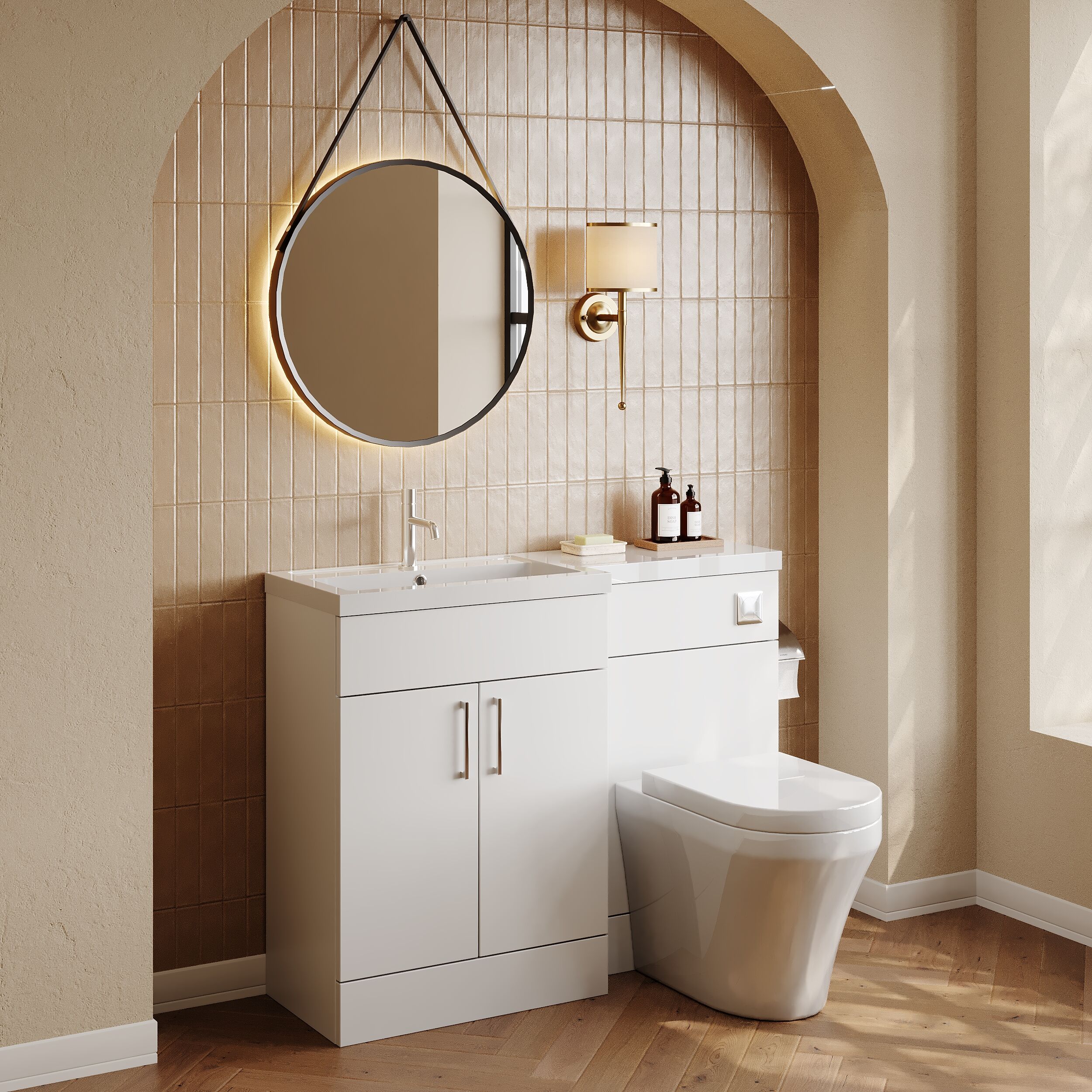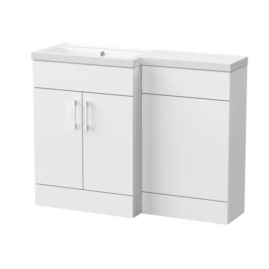 Nuie Lux Krest 1100mm Full Depth Combination Unit & L-Shaped Basin - Left Hand - Matt White