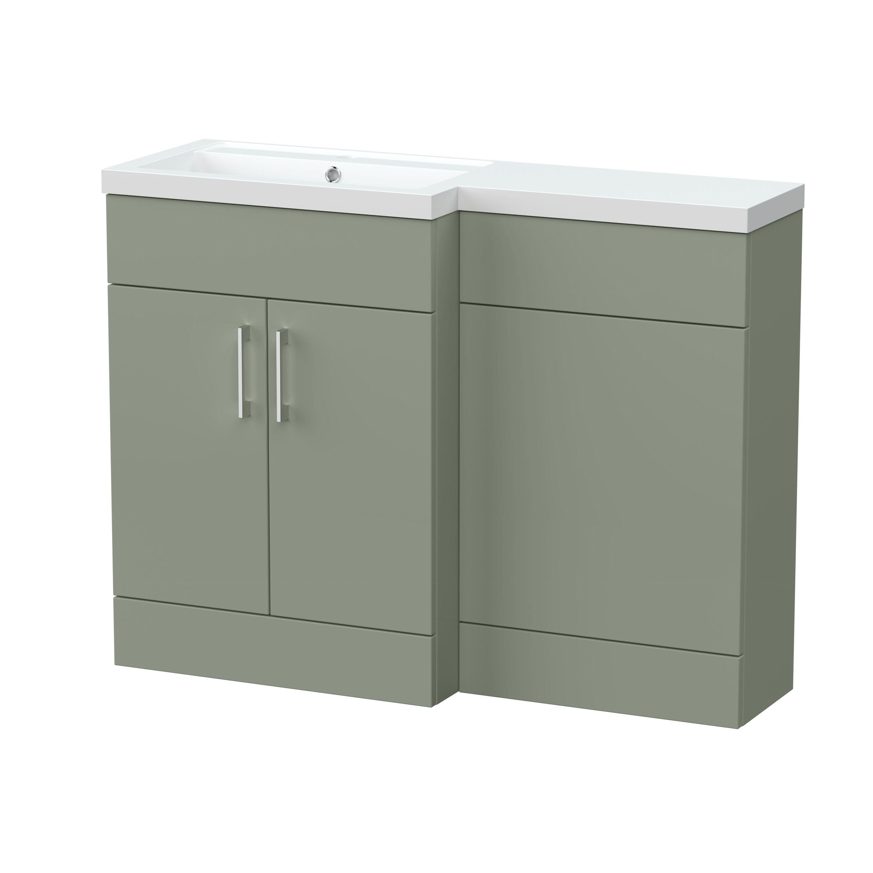 Nuie Lux Krest 1100mm Full Depth Combination Unit & L-Shaped Basin - Left Hand - Fern Green